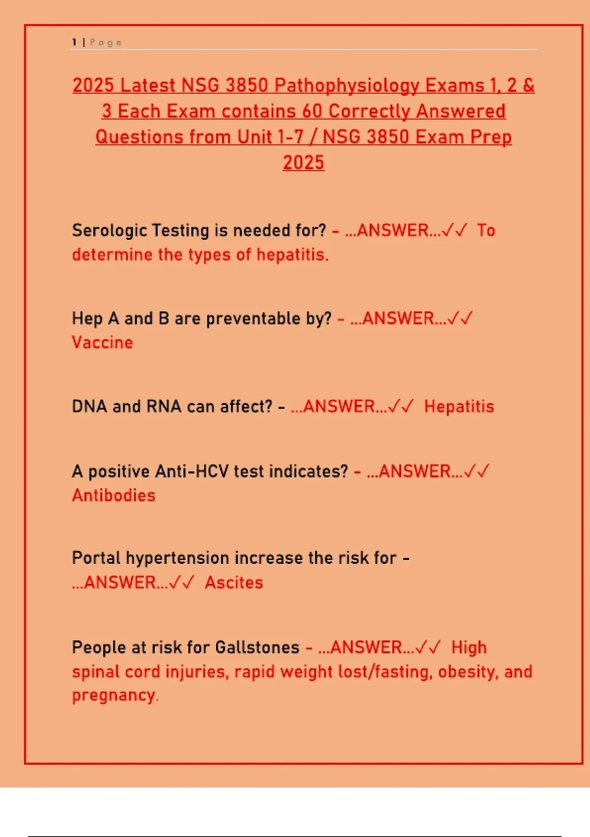 Ace your NSG 3850 Pathophysiology Exam 1 with this comprehensive PDF resource. Includes a collection of practice exam questions, answers, and key concepts covering foundational principles, cellular injury, fluid & electrolytes, and inflammation. Ideal for nursing students to test their knowledge and prepare effectively.