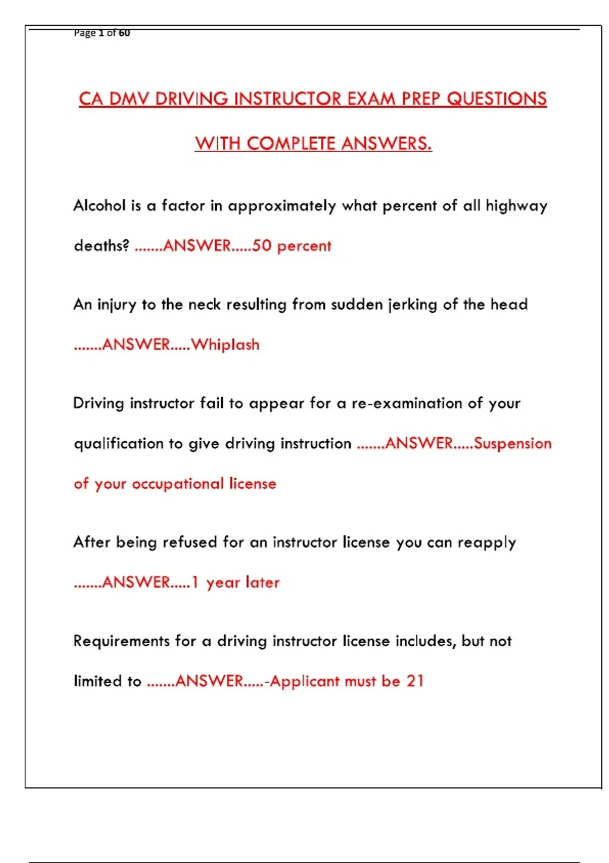 CA DMV Driving Instructor Exam Prep 2024: Practice Questions & Complete Answers