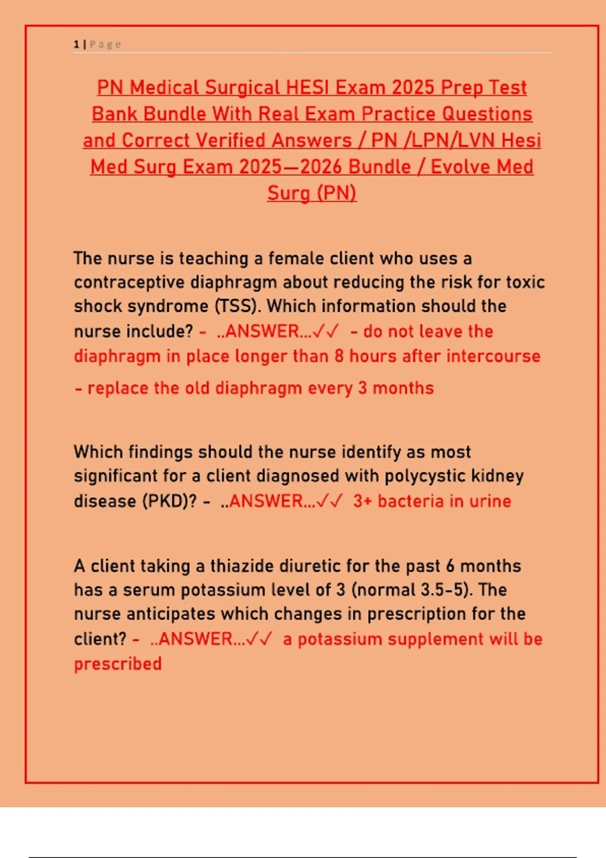 PN Medical Surgical HESI Exam 2025: Practice Questions & Verified Answers