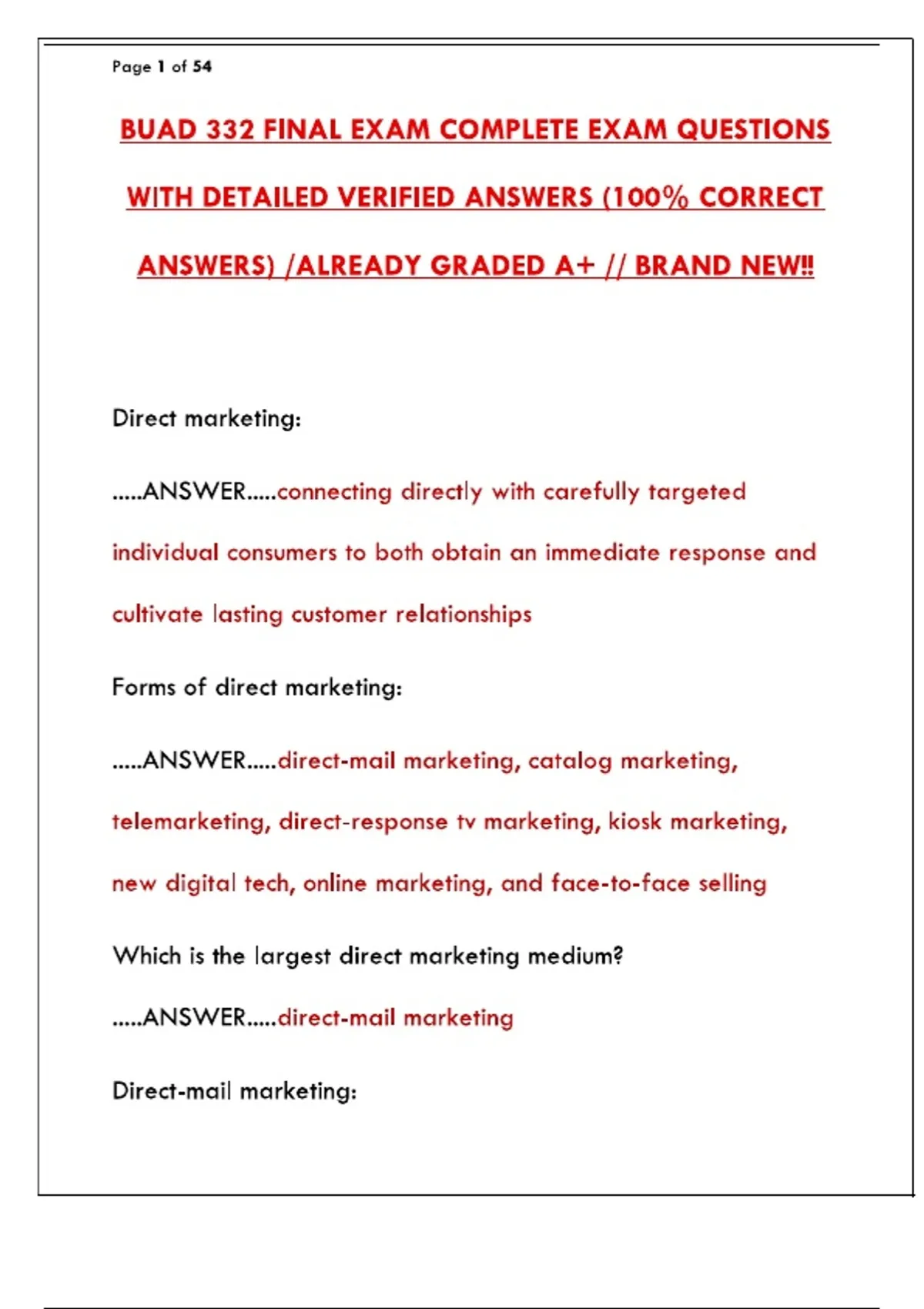 Ace your BUAD 332 Final Exam in 2025. This complete study guide provides comprehensive exam questions with detailed, verified answers to ensure you are fully prepared and confident.