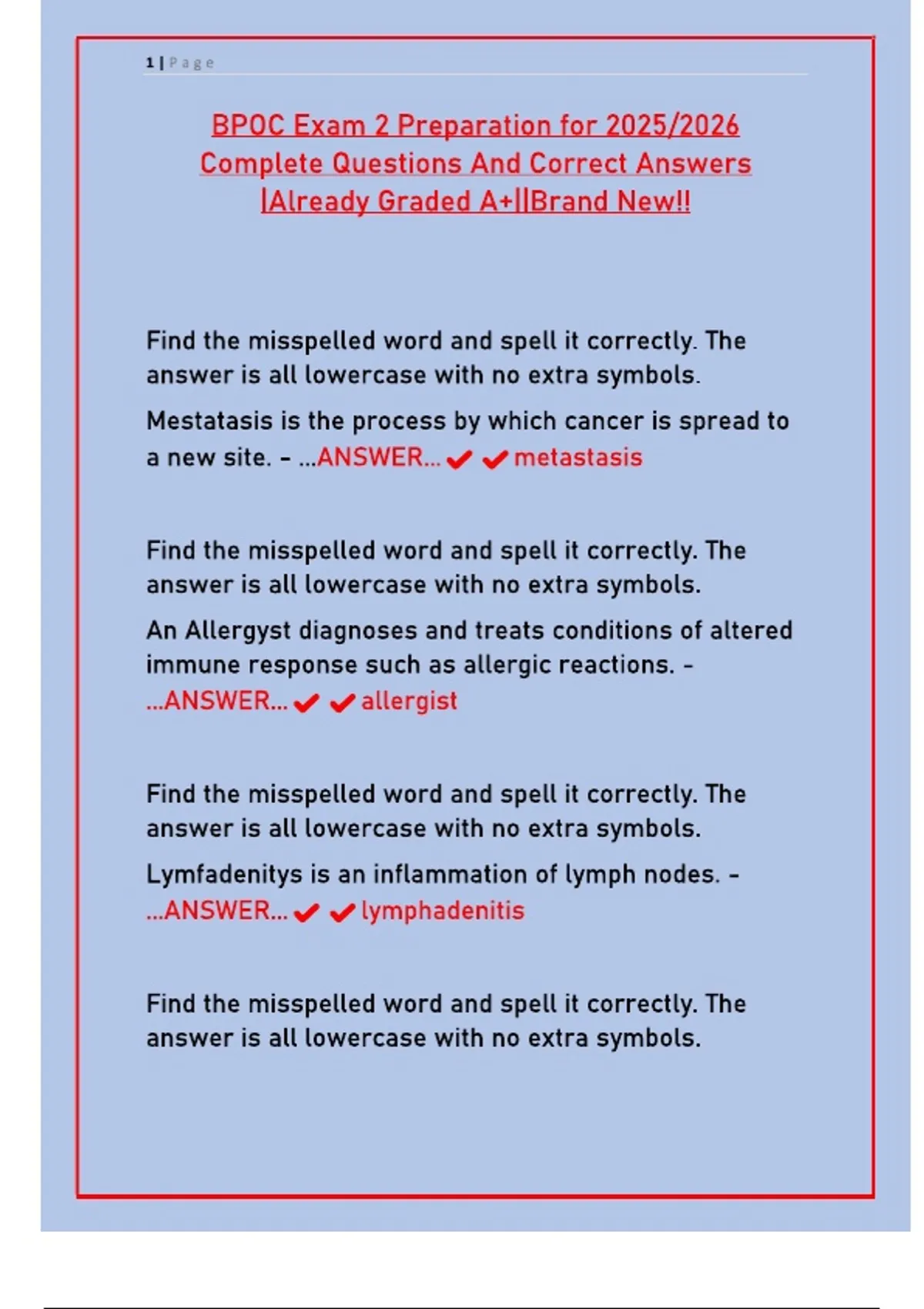 Ace your BPOC Exam 2 with this comprehensive final preparation guide. Includes key concept summaries, essential terminology, practice questions with answers, and clinical scenario breakdowns for effective last-minute review.