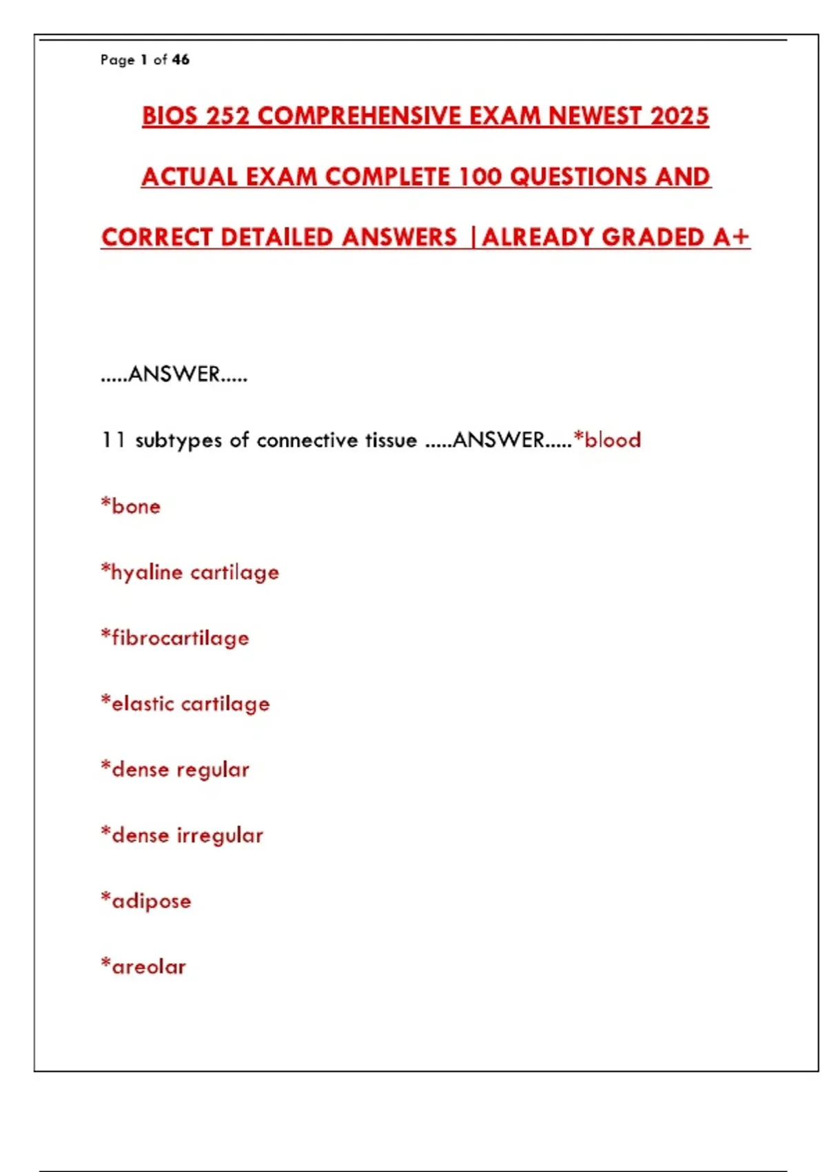 bios 252 comprehensive exam 2025 100 actual quest