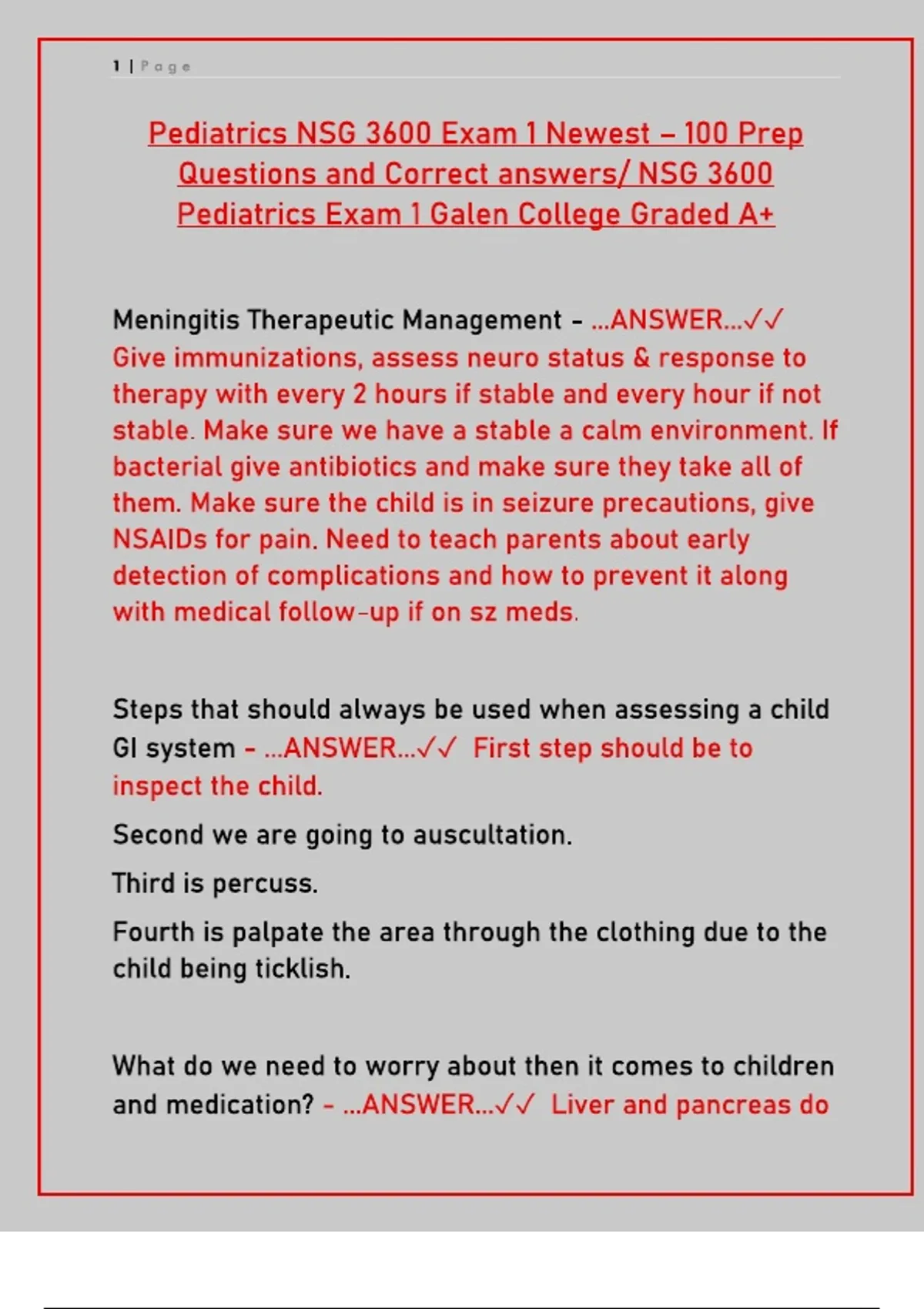 Ace your Pediatrics nursing exam with this comprehensive guide for NSG 3600 Exam 1. Get the newest practice questions, key concepts, and study resources to master child health, development, and common pediatric conditions.