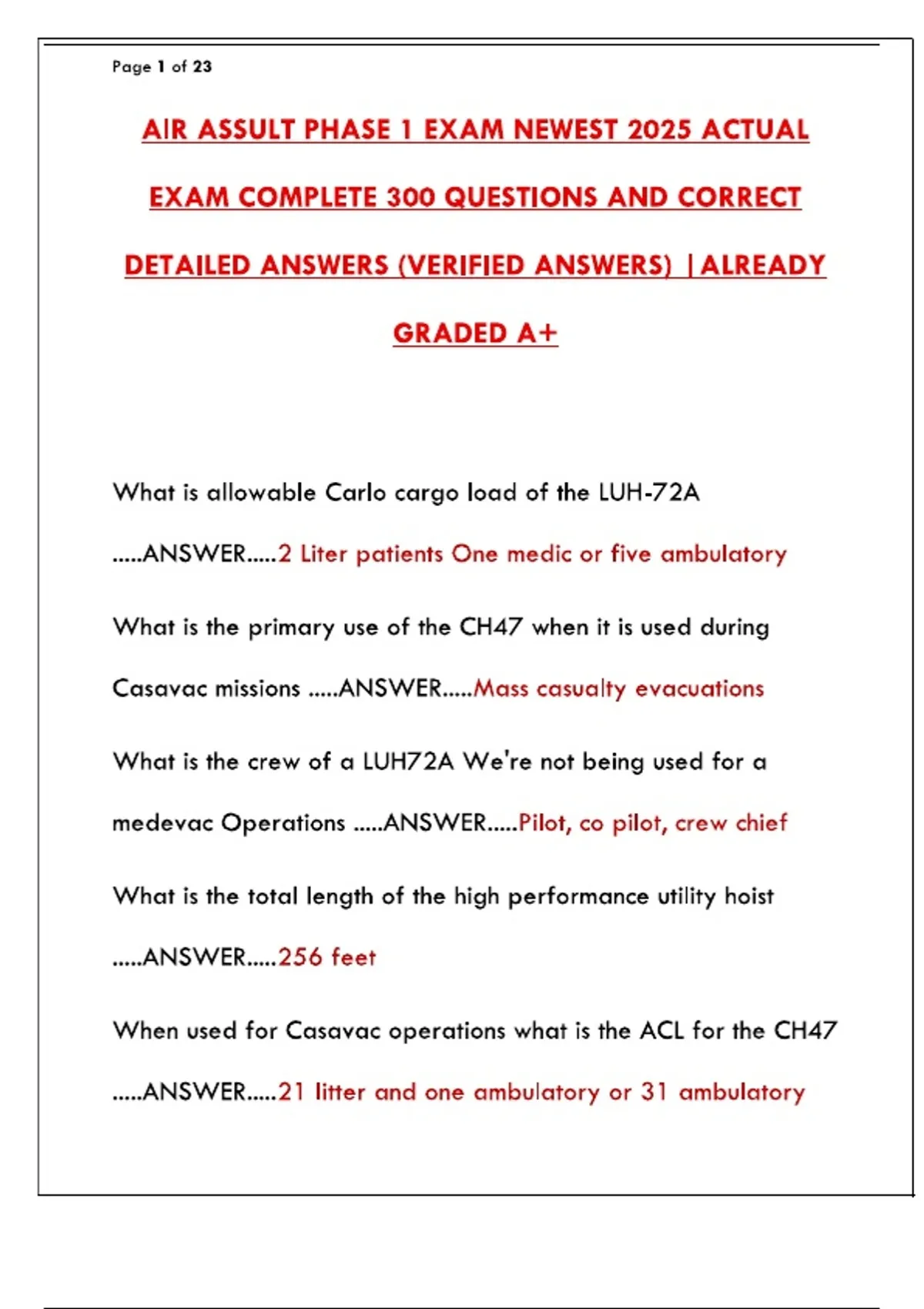 Prepare for the 2025 Air Assault Phase 1 exam with our complete test bank. Features 300 actual exam questions with correct detailed answers for military air assault qualification.