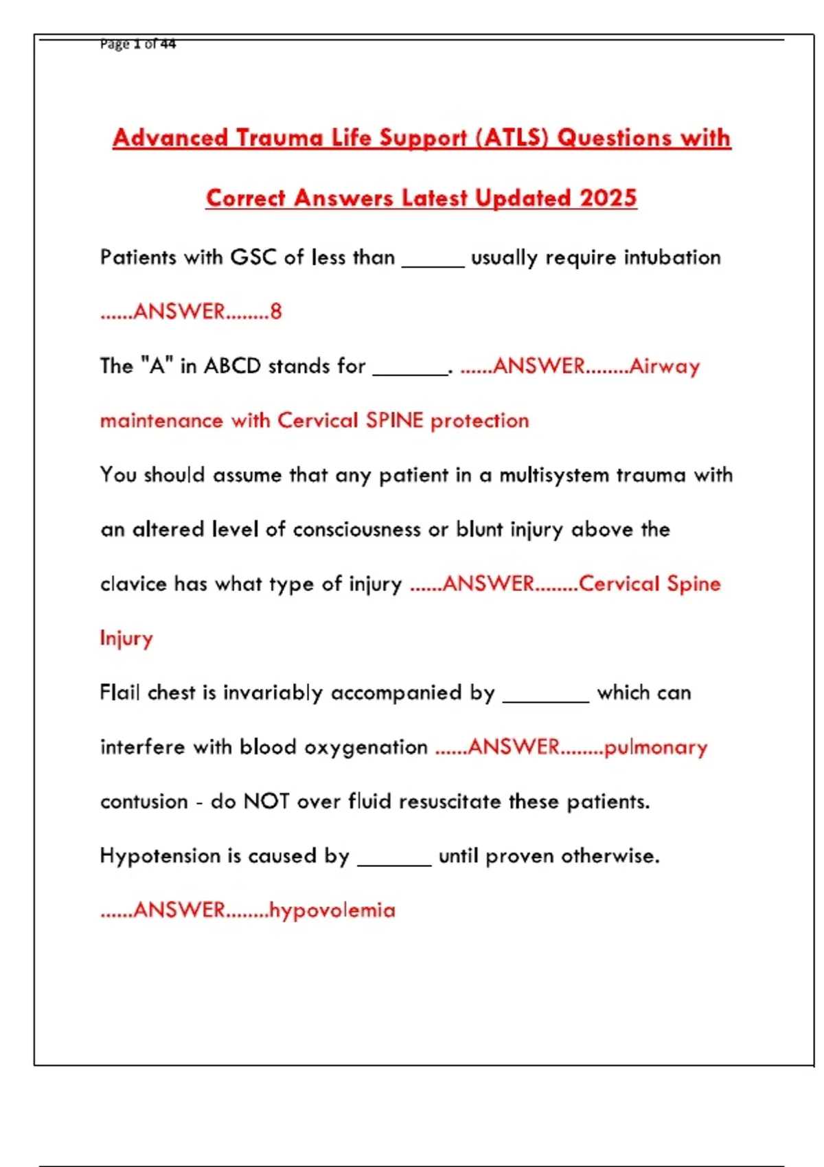 Prepare for the 2025 ATLS certification exam with our latest updated test bank. Features trauma care questions with correct verified answers for healthcare professionals.