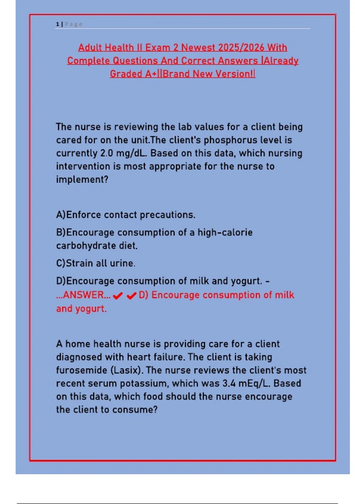 Prepare for the 2025 Adult Health II Exam 2 with our newest test bank. Features practice questions, clinical scenarios, and verified answers for nursing students.