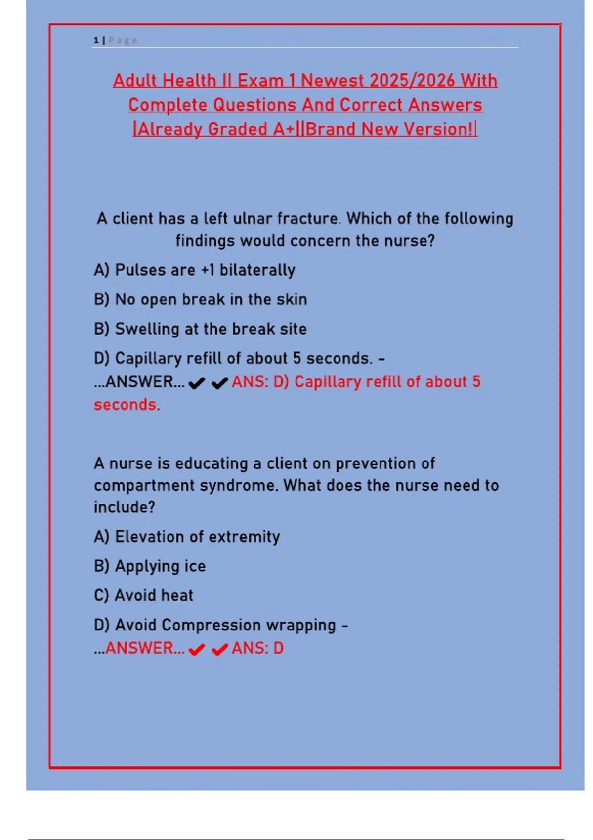 Prepare for the 2025 Adult Health II Exam 1 with our newest test bank. Features practice questions, clinical scenarios, and verified answers for nursing students.