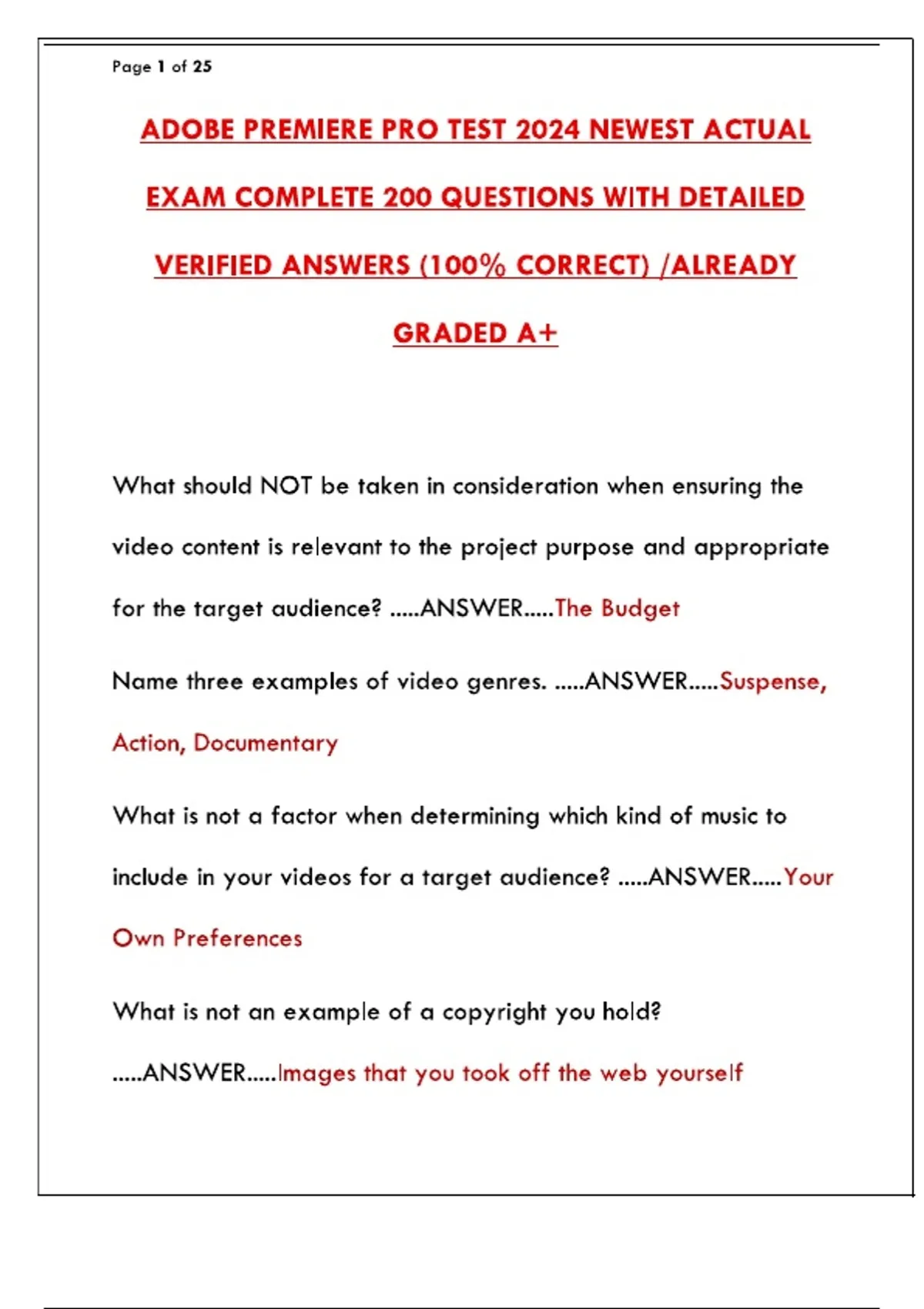 Prepare for the 2025 Adobe Premiere Pro certification exam with our newest test bank. Features 200 actual exam questions with detailed verified answers for video editing professionals.