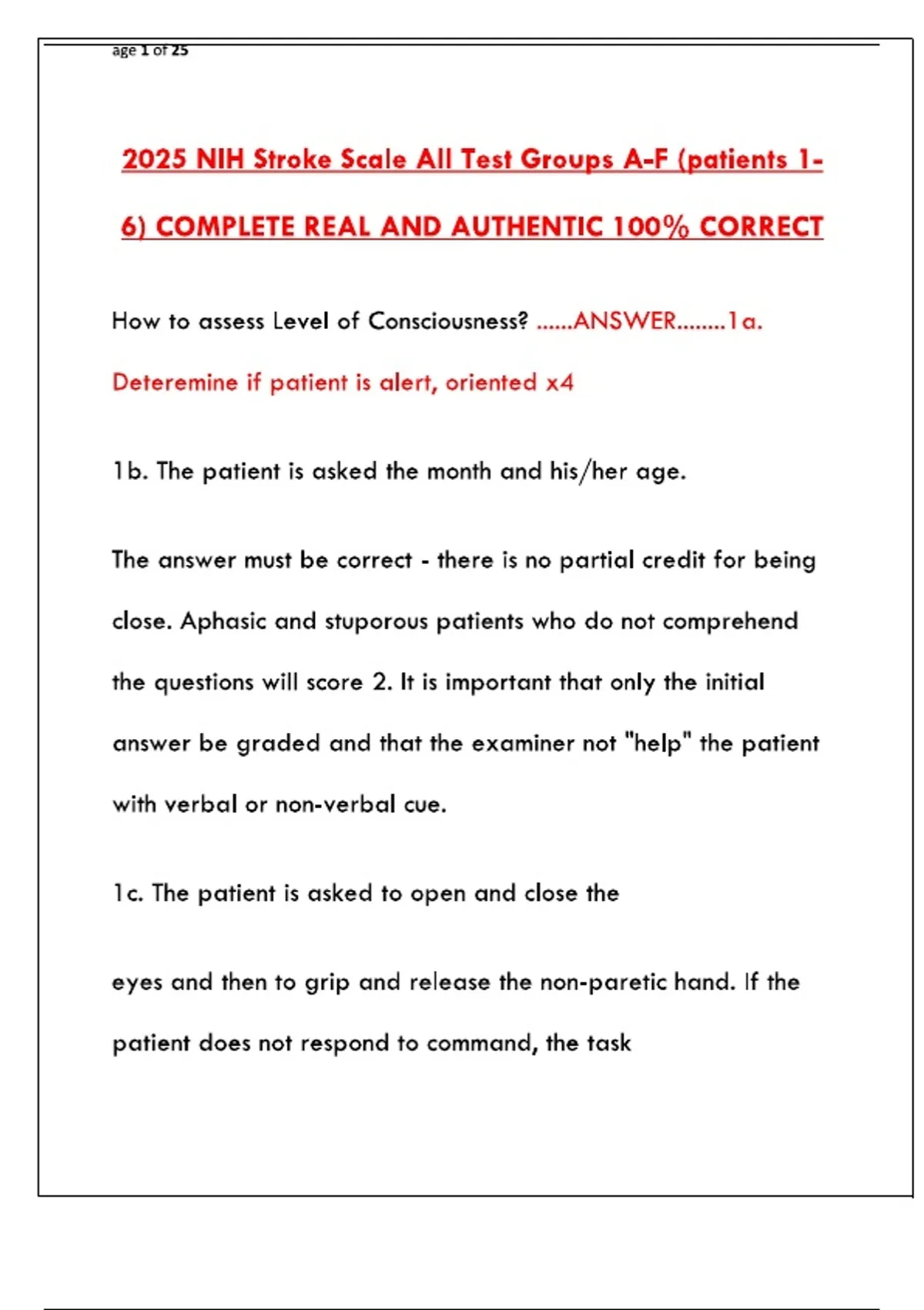2025 NIH Stroke Scale Certification Test Groups A: All Answers & Study Guide