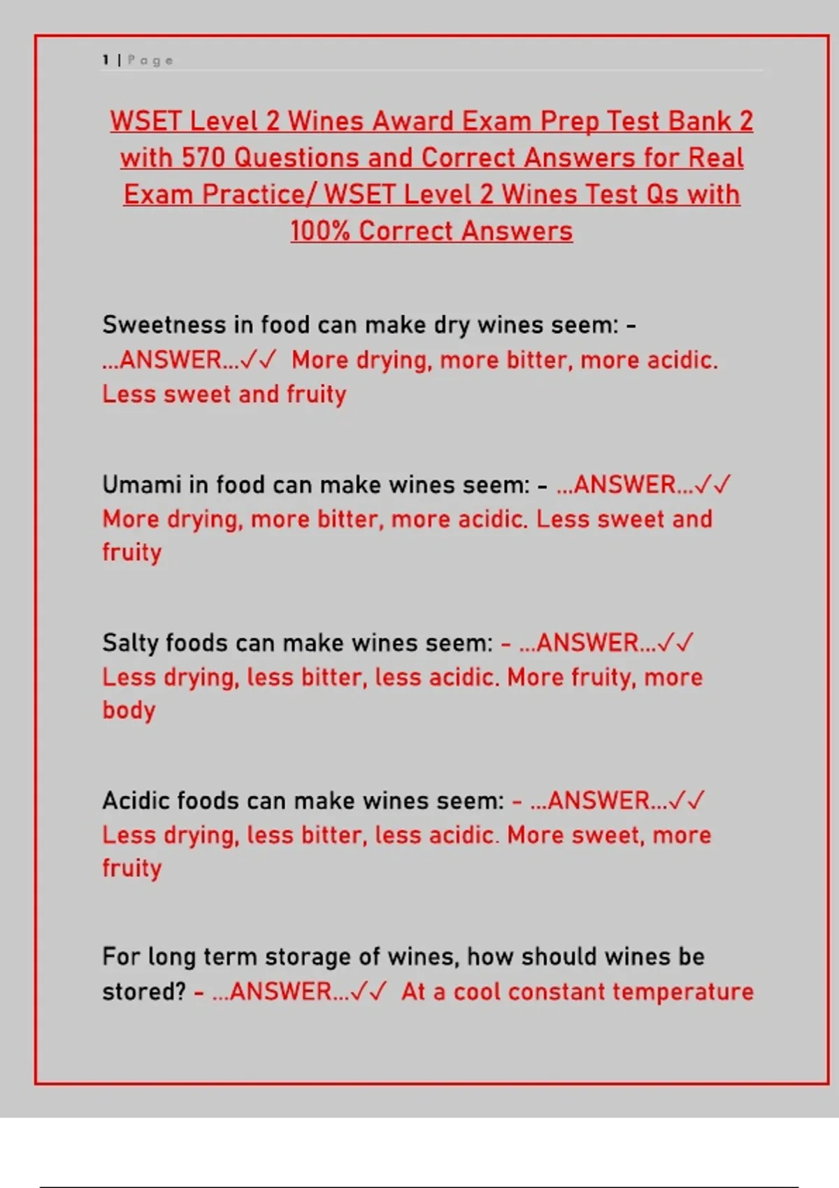 Pass your WSET Level 2 Award in Wines exam in 2025. This complete test bank with 570 questions and verified answers covers wine styles, grape varieties, regions, production, and food pairing for guaranteed success.