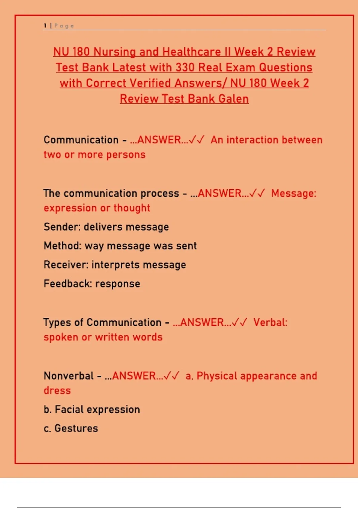 Master your NU180 Nursing and Healthcare II Week 2 review with the 2025 test bank. Includes 330 real exam questions and verified answers on therapeutic communication, culture, and spiritual care.