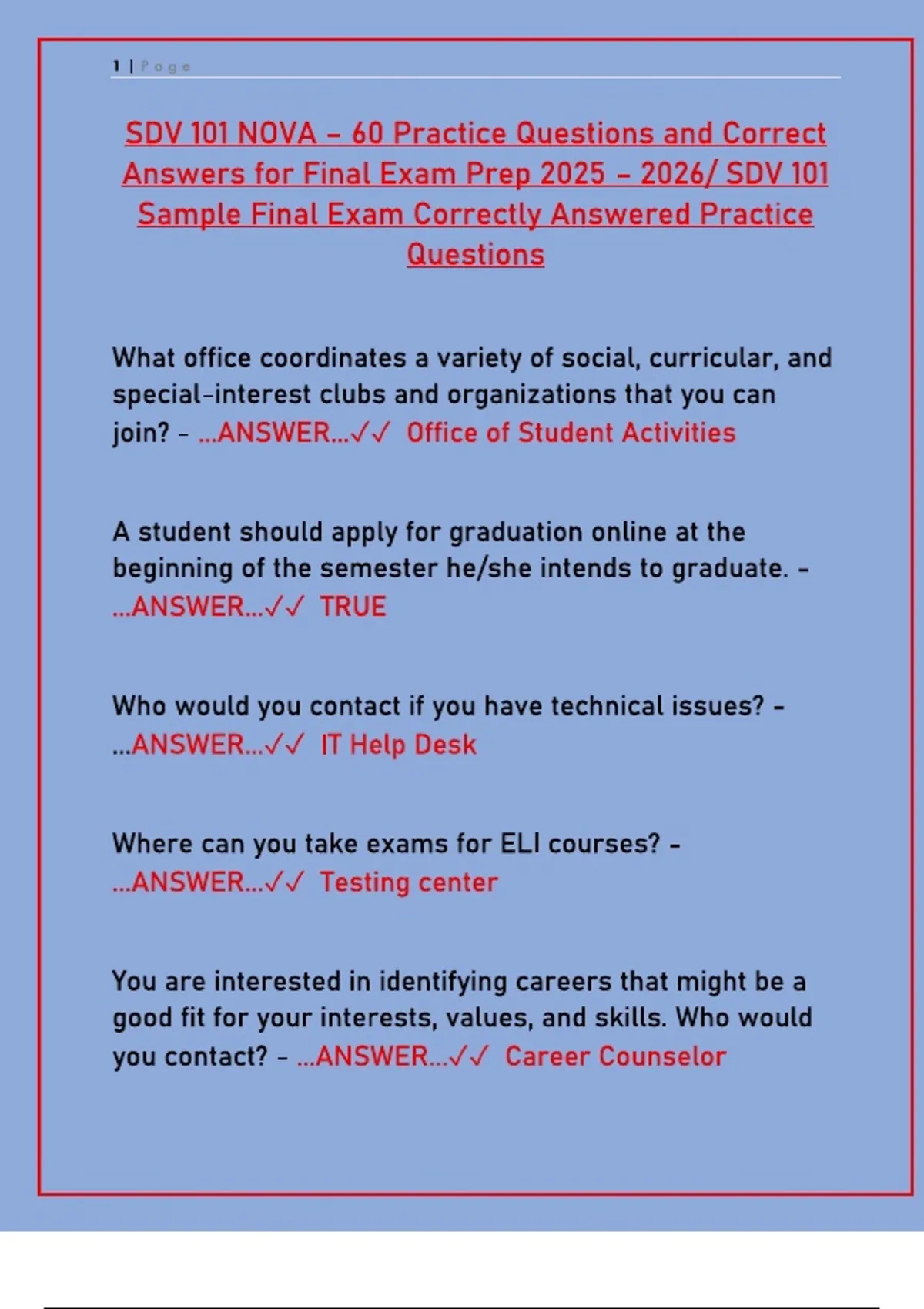 SDV 101 NOVA Final Exam Practice 2025: 60+ Student Development Questions & Answers