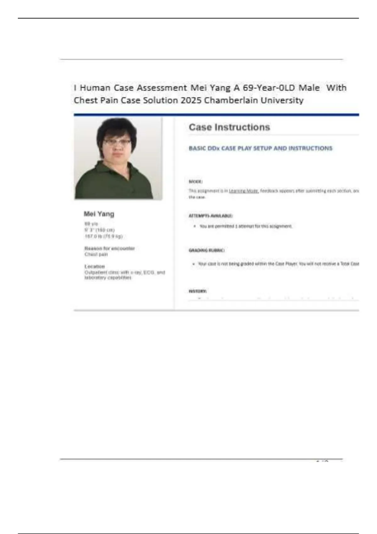 Struggling with the i-Human Mei Yang case study for Chamberlain University? Get a comprehensive solution guide for the 69-year-old male with chest pain. Our walkthrough covers the HPI, differential diagnosis, physical exam findings, and treatment plan to help you succeed in 2025.
