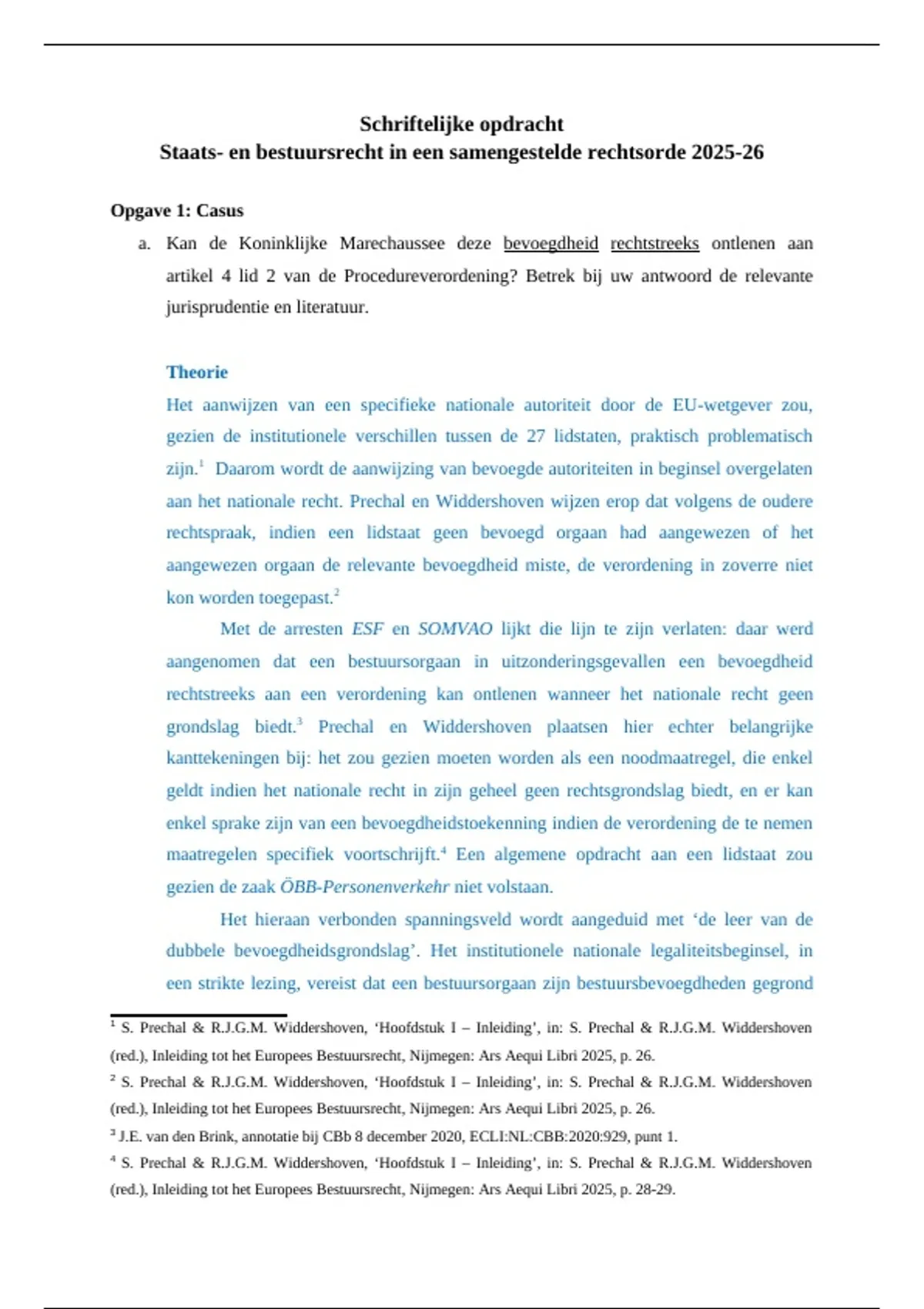 In dit document staan mijn uitwerkingen voor de schriftelijke opdracht voor het vak Staats- en Bestuursrecht in een samengestelde rechtsorde. De opdracht bestond uit twee juridisch-technische vragen en 1 meta-juridische essayvraag.