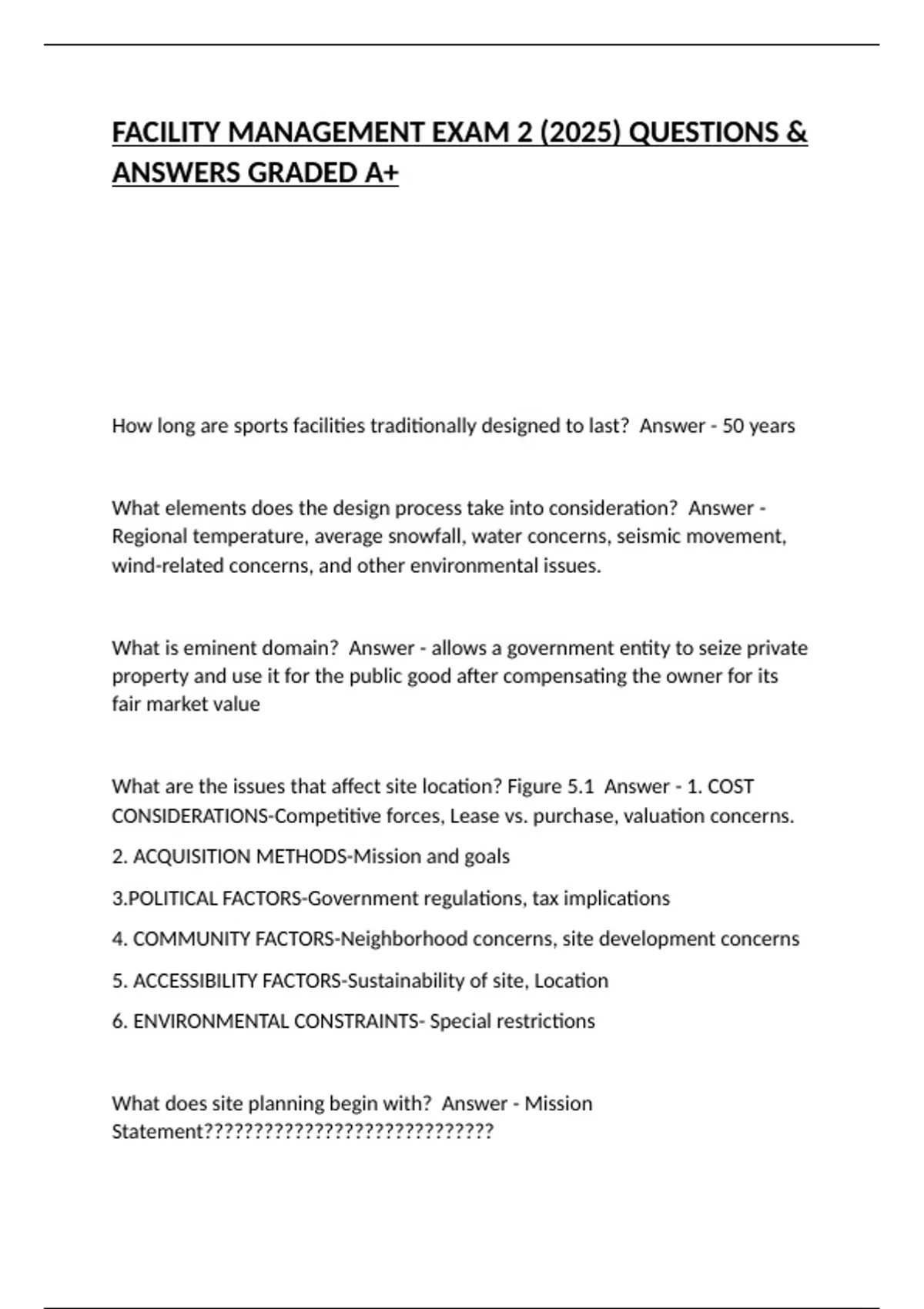 facility? Answer - 1. Who the typical facility users will be and what their needs