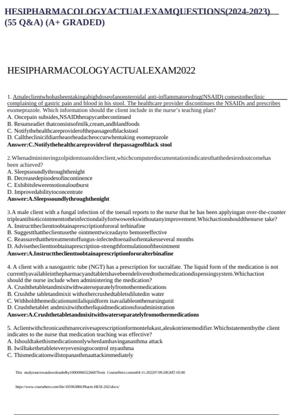 , HESIPHARMACOLOGYACTUALEXAMQUESTIONS(2024-2023)