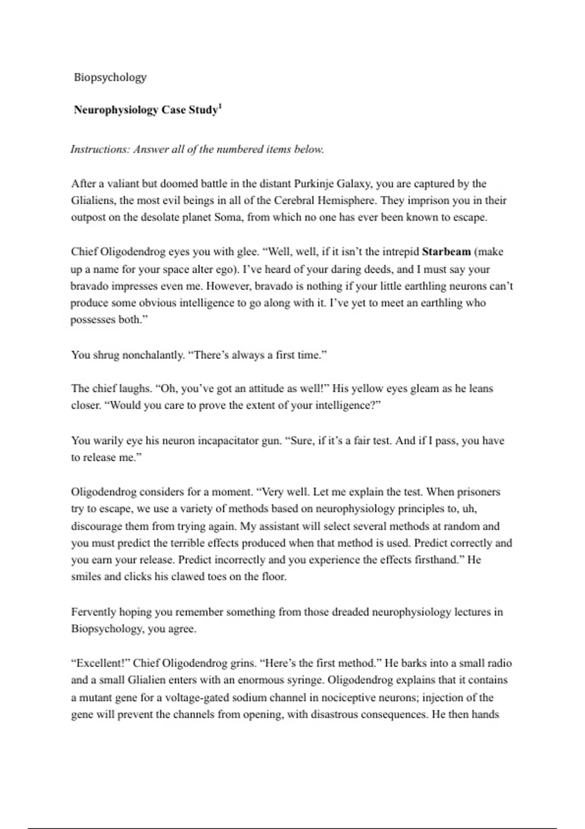 Biopsychology Week 2 Case Study Assignment (Questions and Answers)