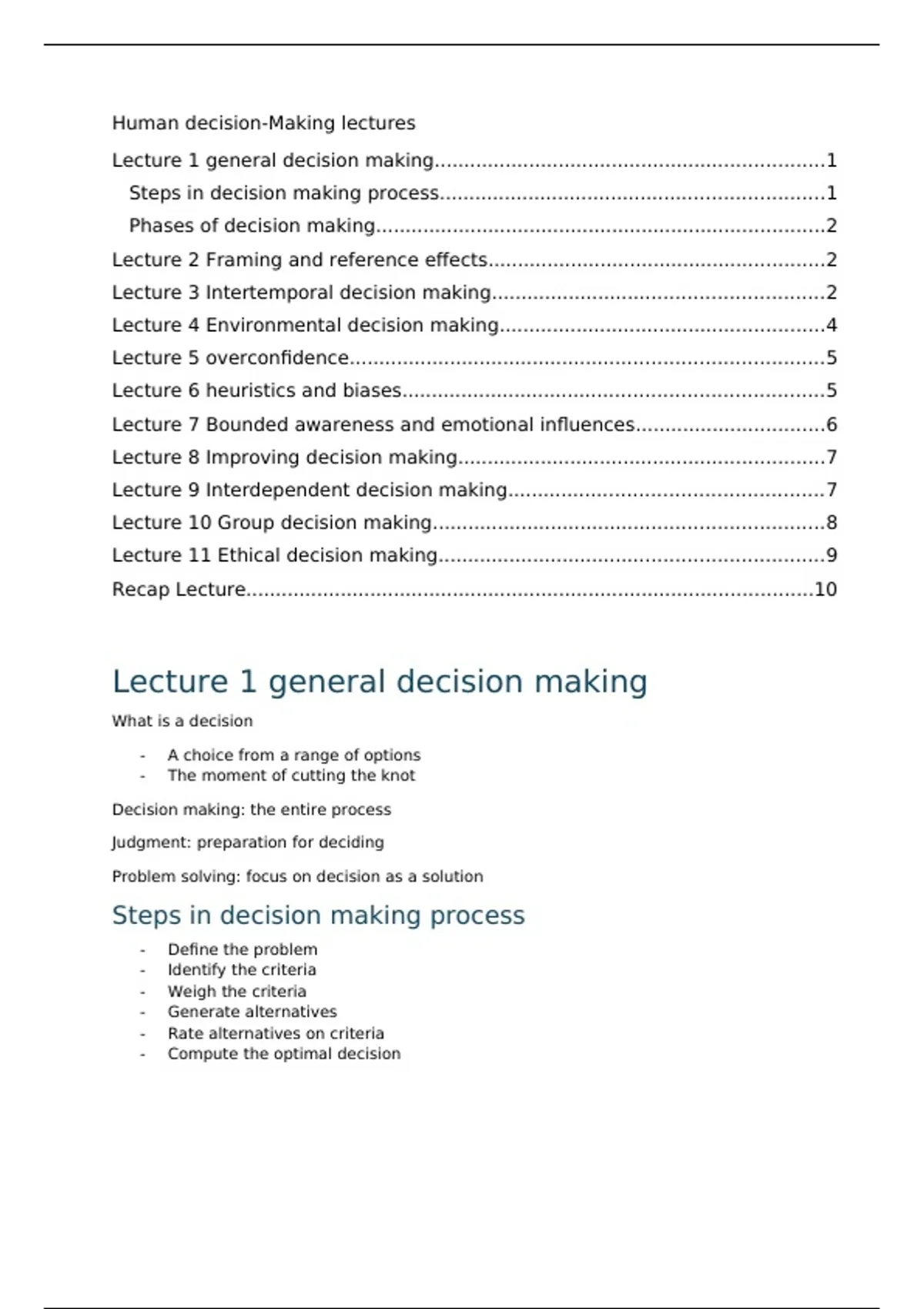 Lecture 1 general decision making..................................................................1