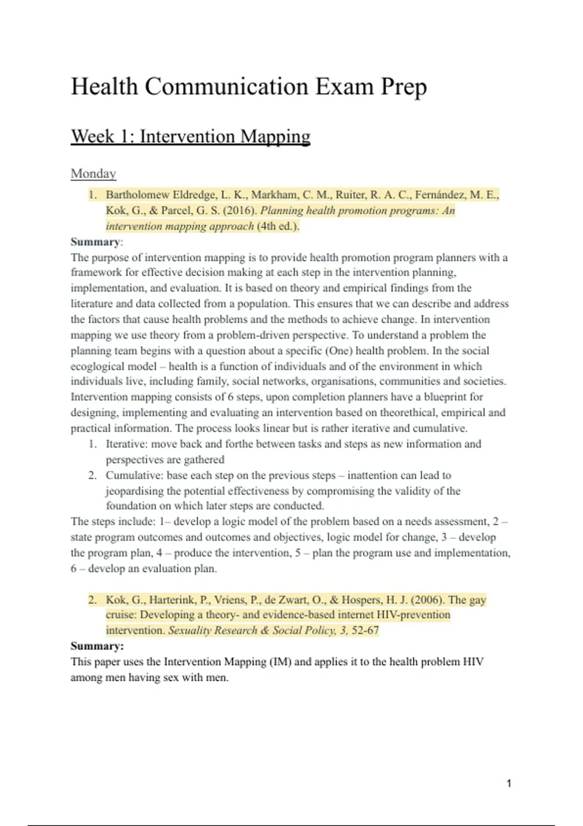 Week 1: Intervention Mapping