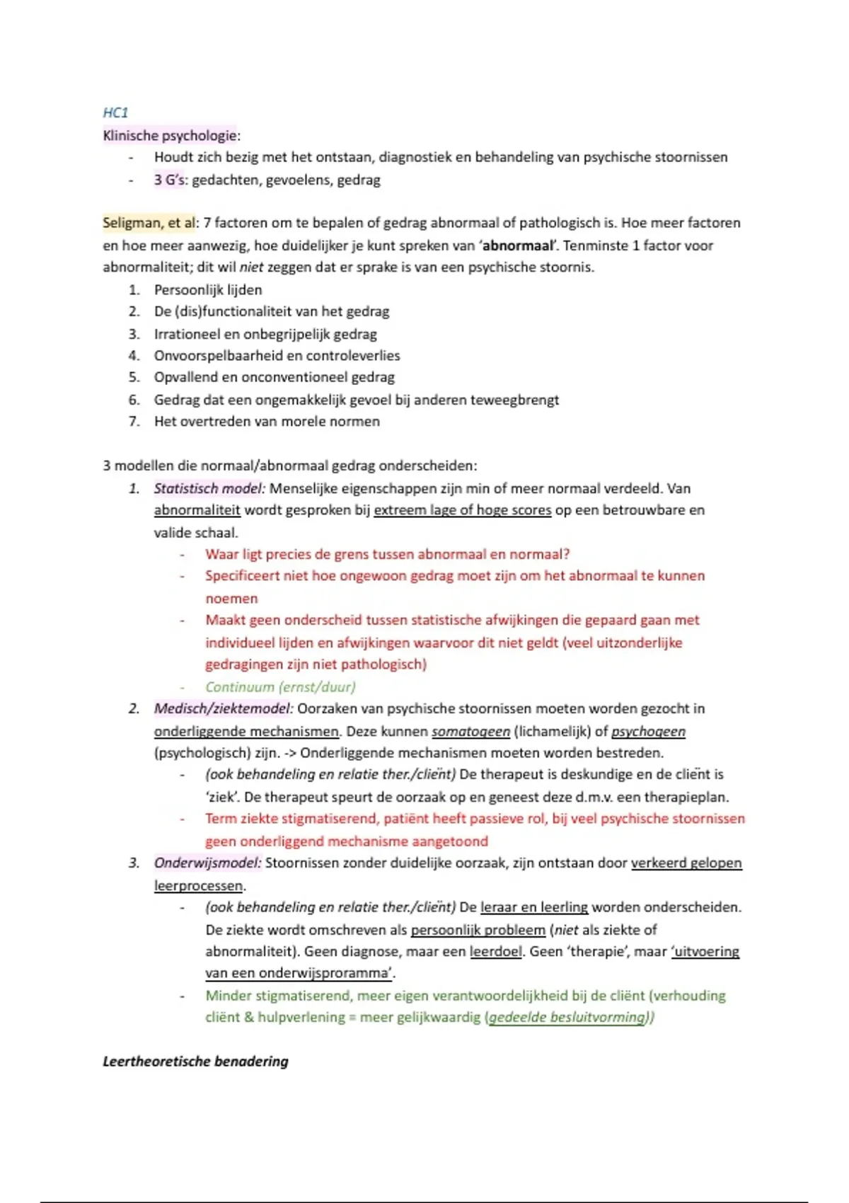 abnormaliteit). Geen diagnose, maar een leerdoel. Geen ‘therapie’, maar ‘uitvoering