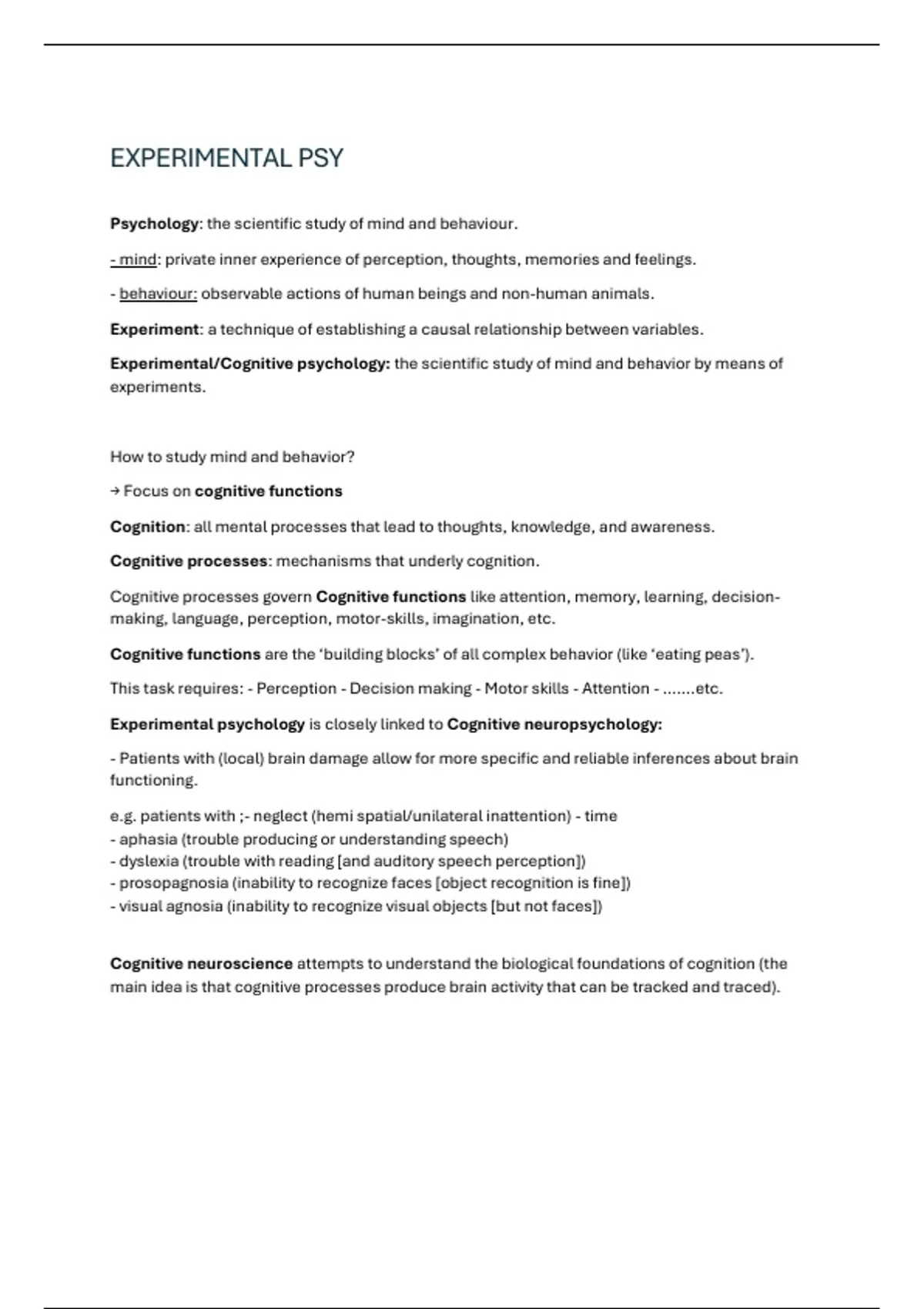 Experimental/Cognitive psychology: the scientific study of mind and behavior by means of