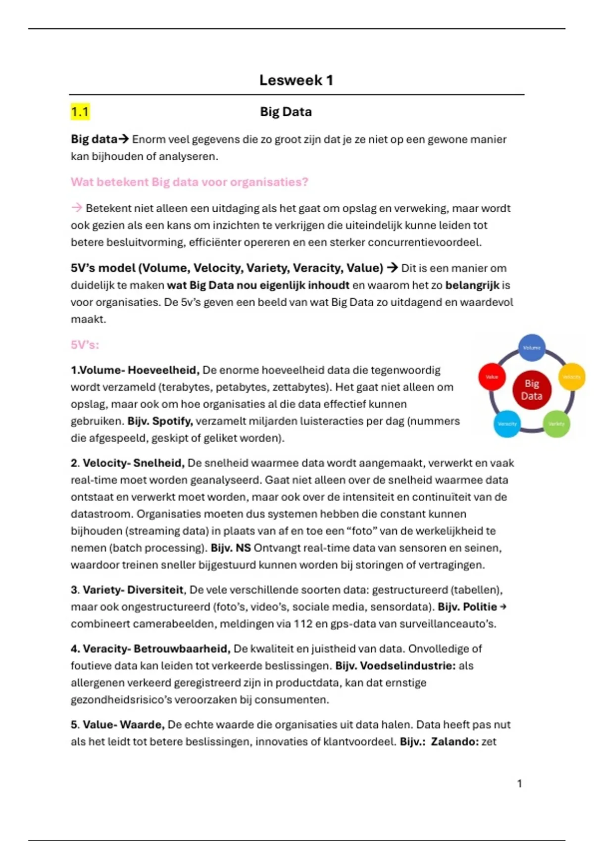 Big data→ Enorm veel gegevens die zo groot zijn dat je ze niet op een gewone manier