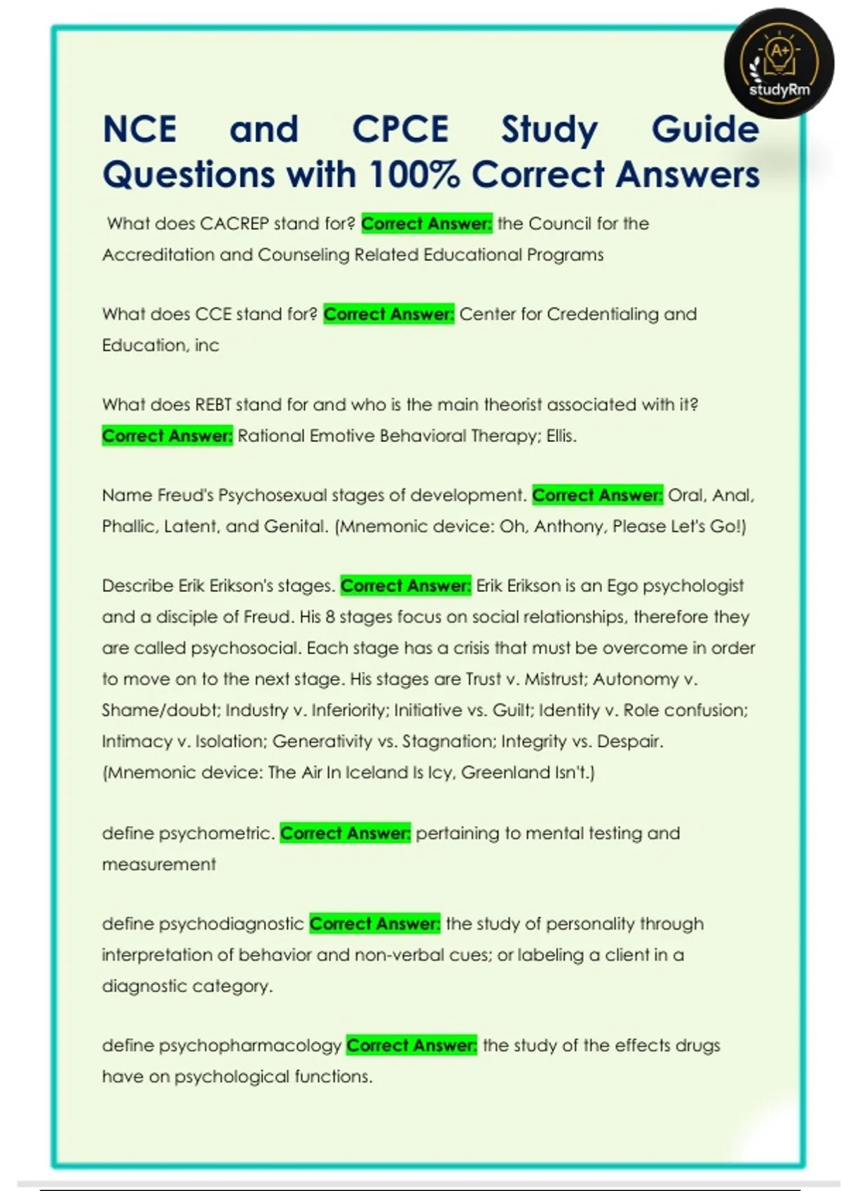 What does CACREP stand for? Correct Answer: the Council for the
