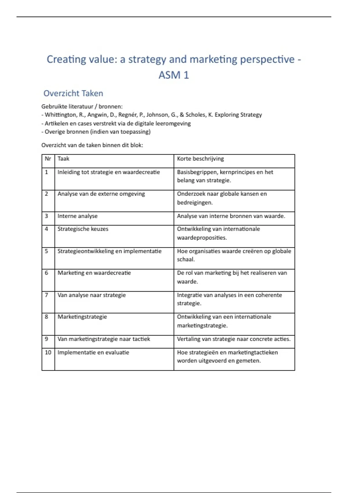 ,Taak 1 Inleiding tot strategie en waardecreatie