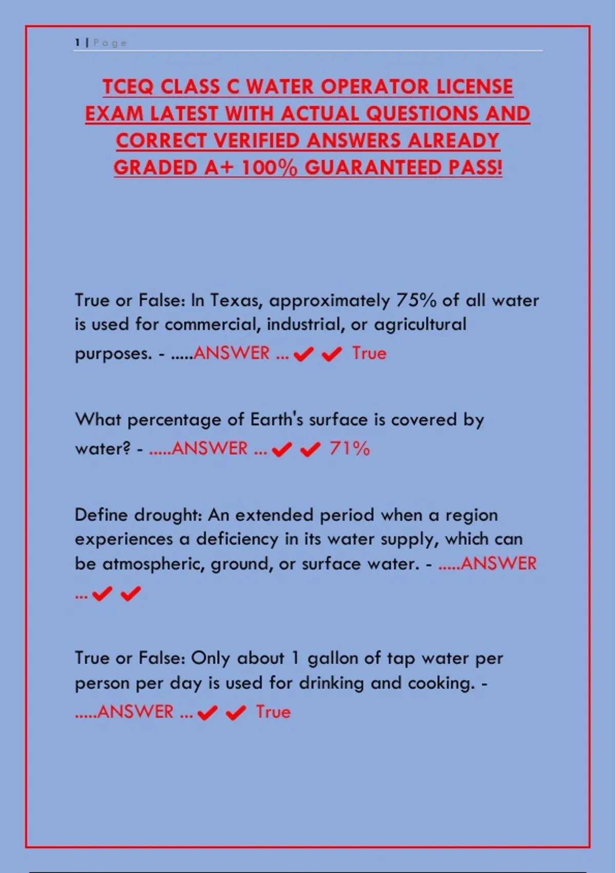 TCEQ CLASS C WATER OPERATOR LICENSE