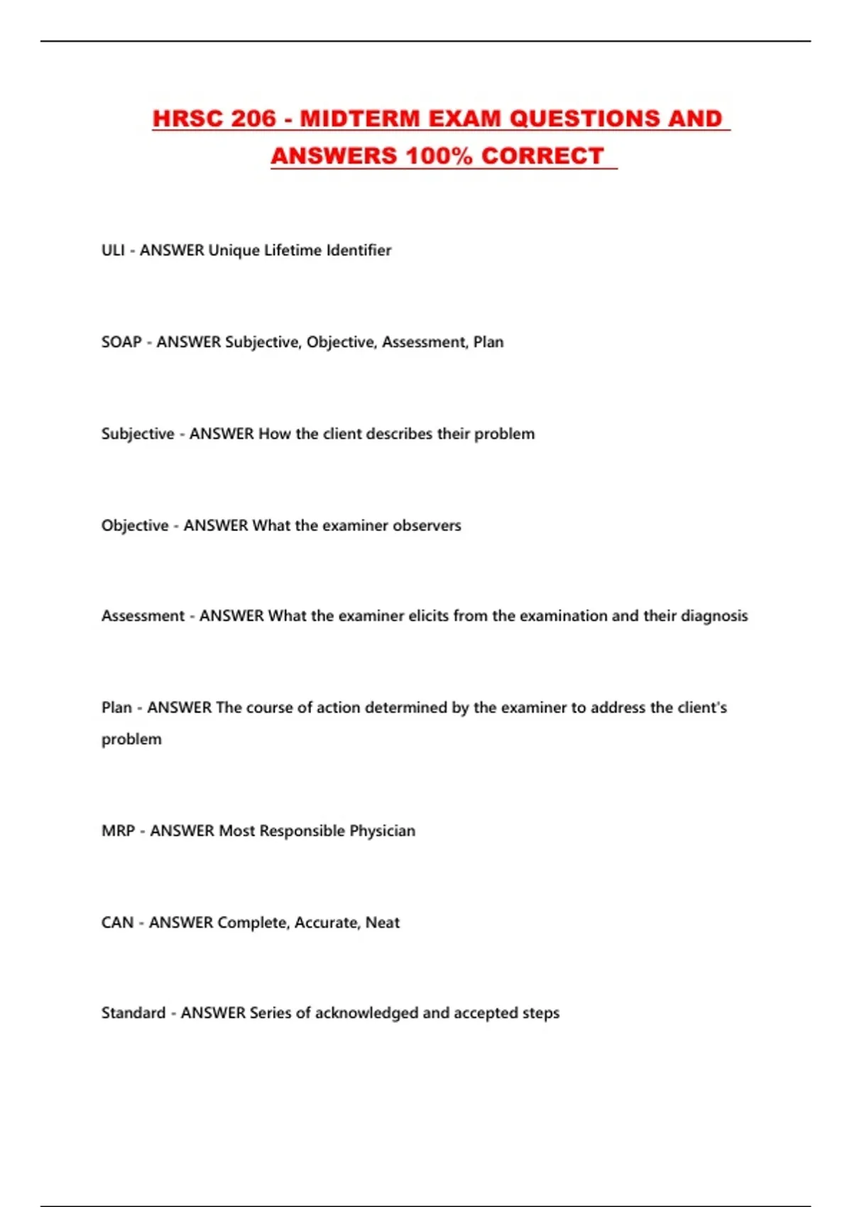 HRSC 206 - MIDTERM EXAM QUESTIONS AND ANSWERS 100% CORRECT ...