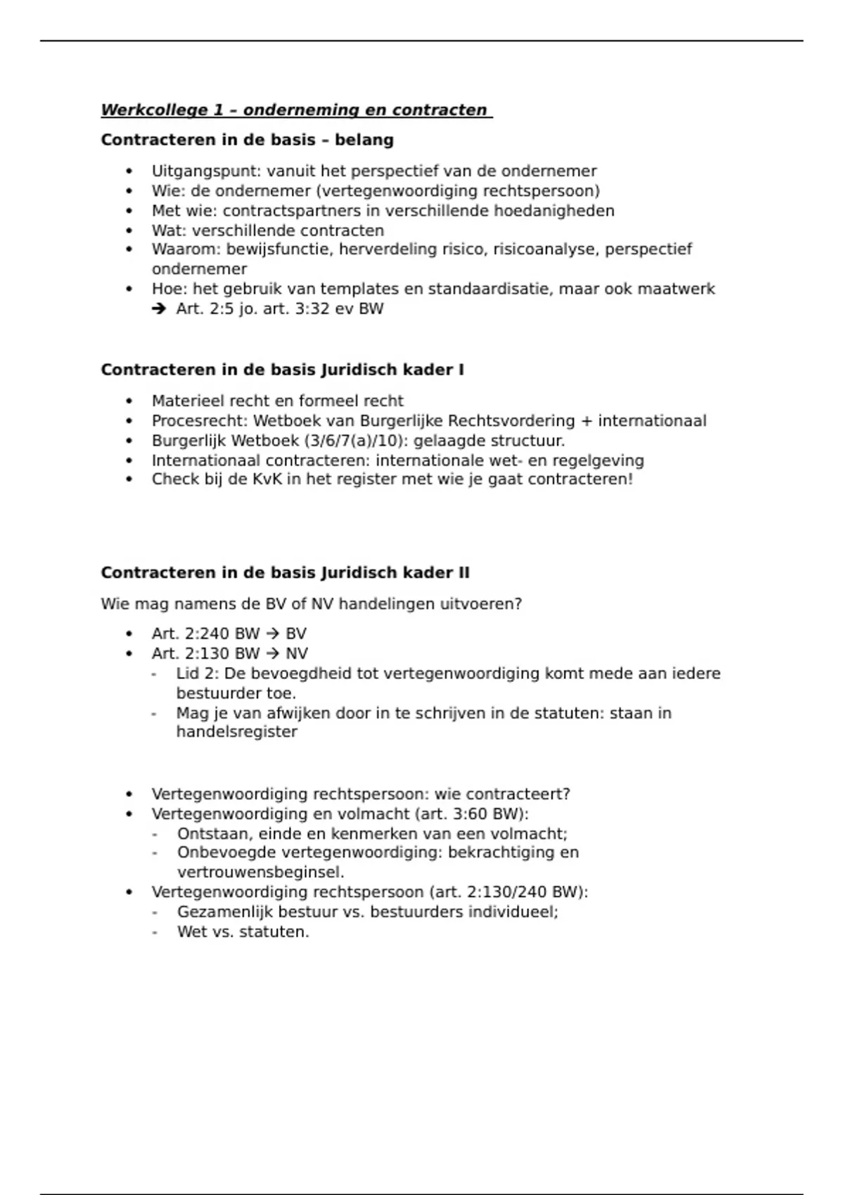 Werkcollege 1 – onderneming en contracten