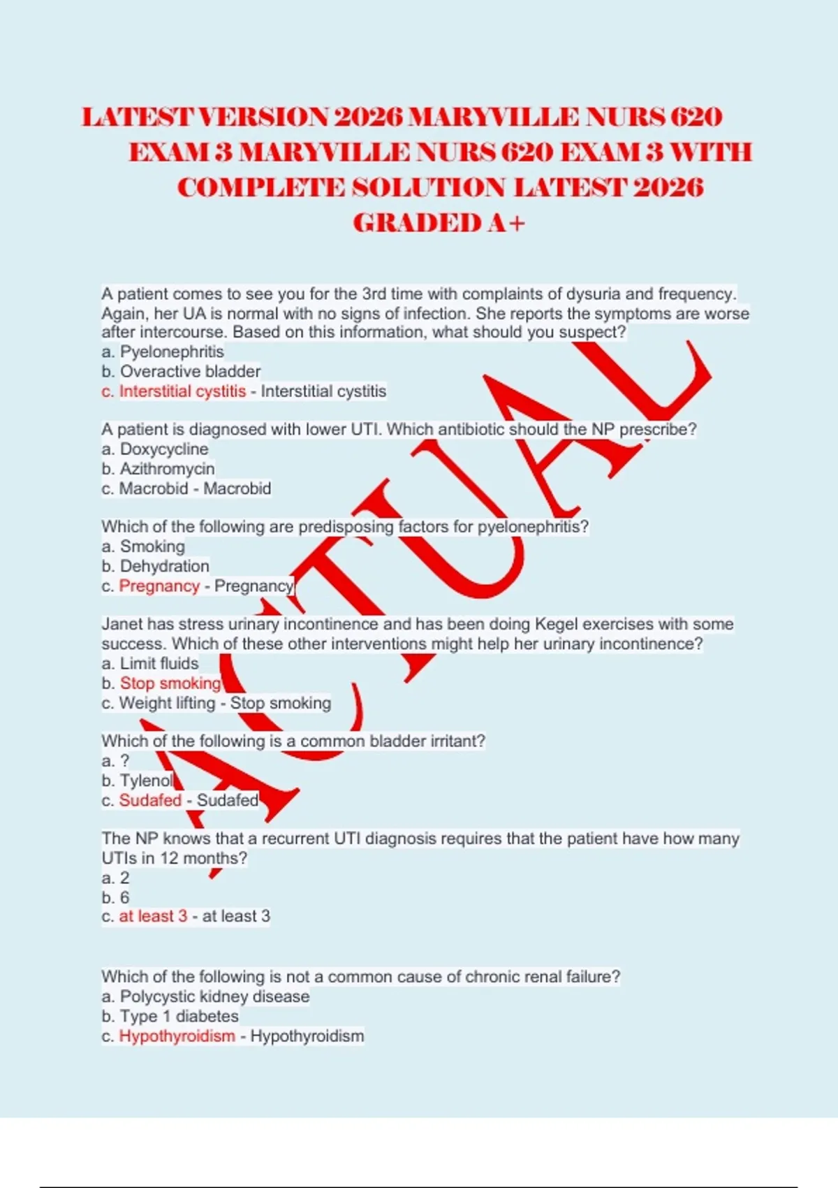 EXAM 3 MARYVILLE NURS 620 EXAM 3 WITH