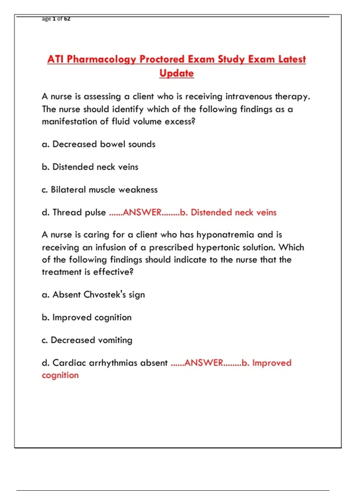 d. Cardiac arrhythmias absent ......ANSWER........b. Improved