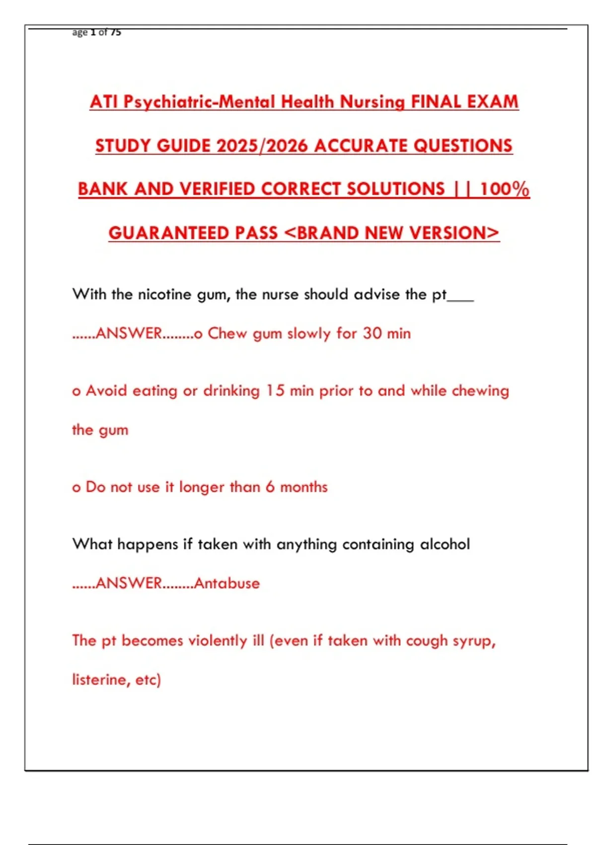 ATI Psychiatric-Mental Health Nursing FINAL EXAM