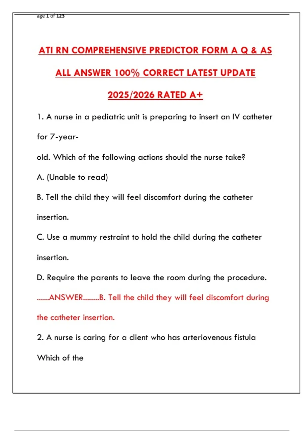 ATI RN COMPREHENSIVE PREDICTOR FORM A Q & AS