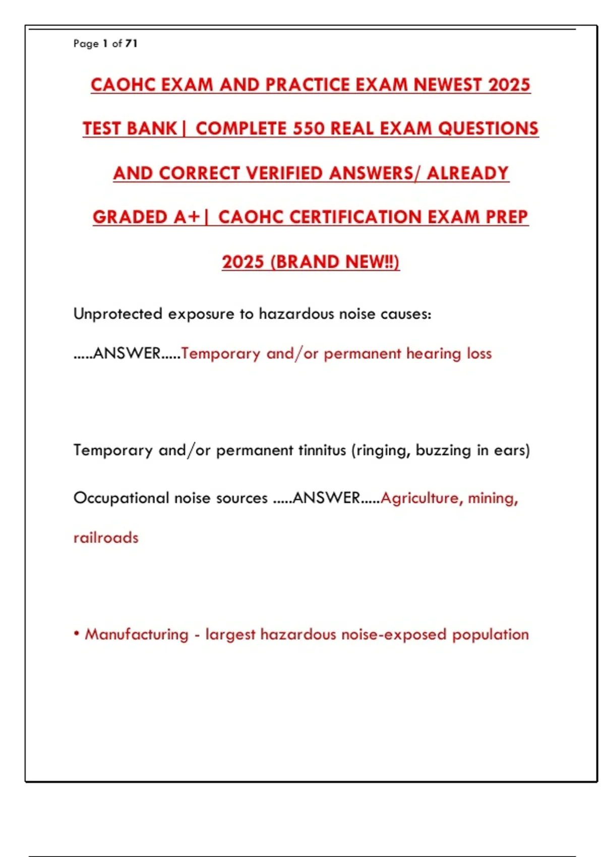 GRADED A+| CAOHC CERTIFICATION EXAM PREP