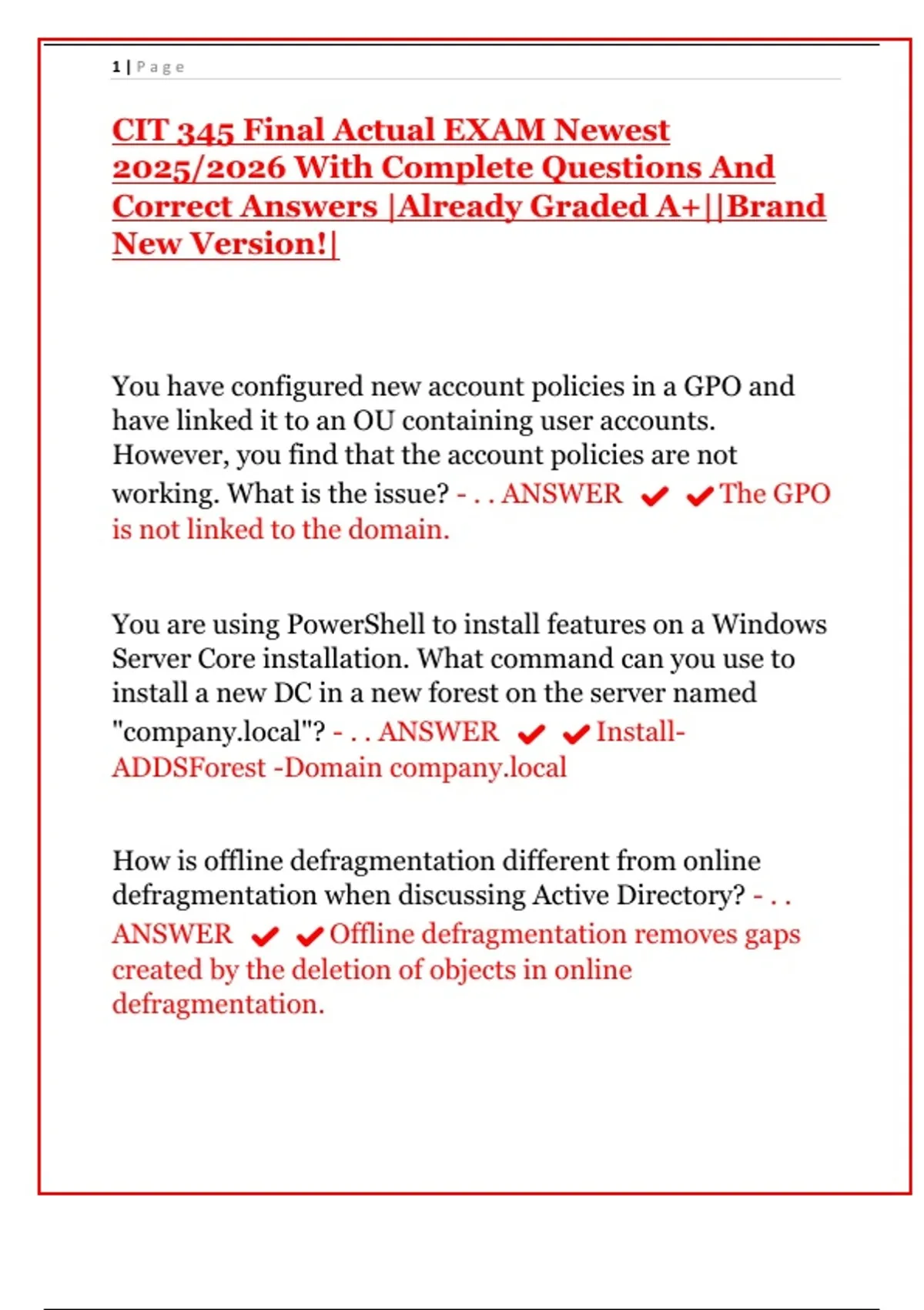 CIT 345 Final Exam 2025: Actual Questions & Study Guide