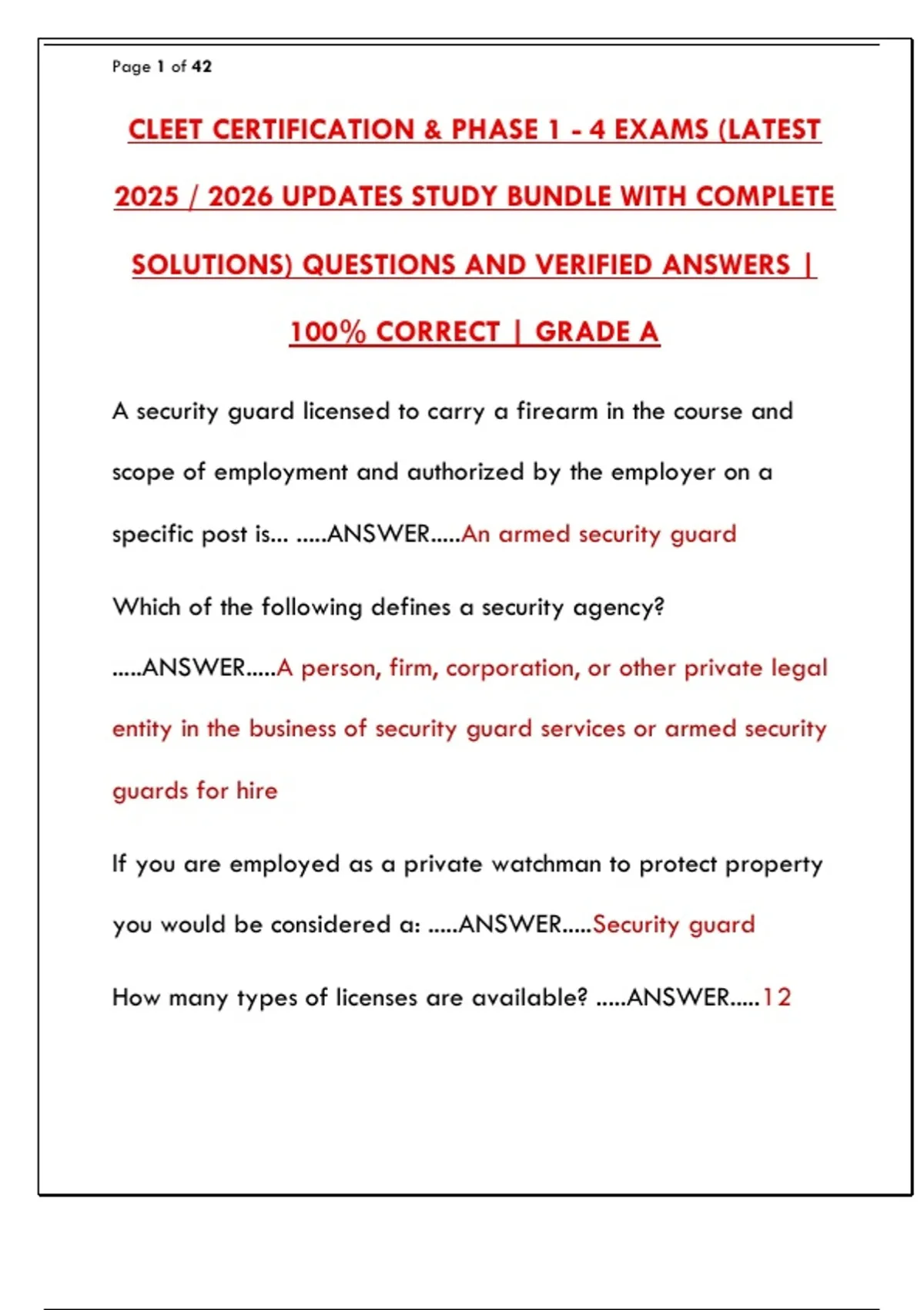 CLEET CERTIFICATION & PHASE 1 - 4 EXAMS (LATEST