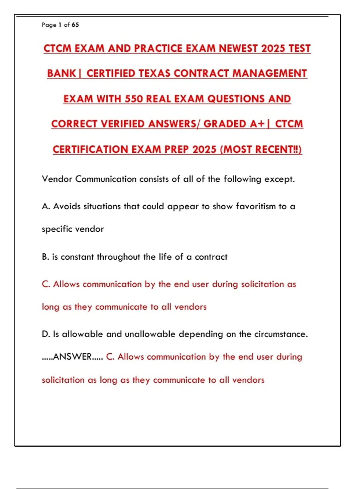 CORRECT VERIFIED ANSWERS/ GRADED A+| CTCM
