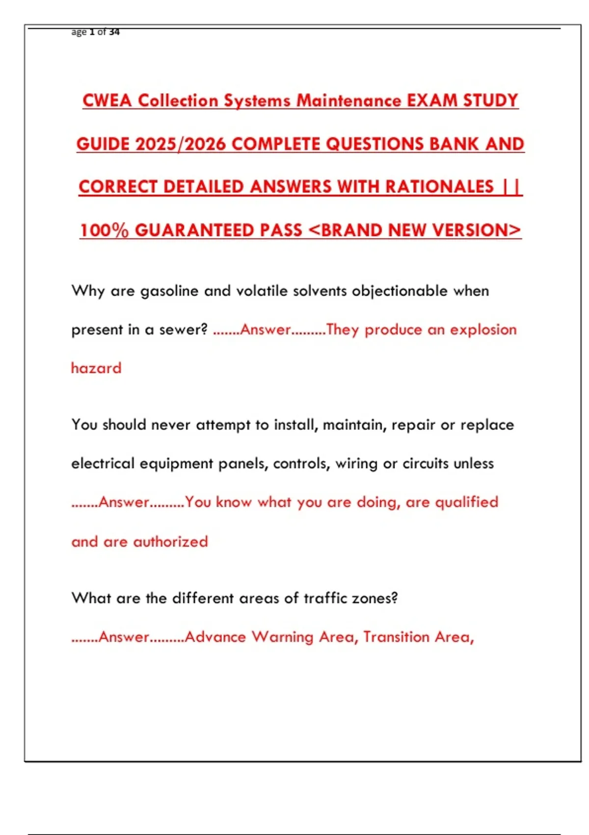 CWEA Collection Systems Maintenance EXAM STUDY