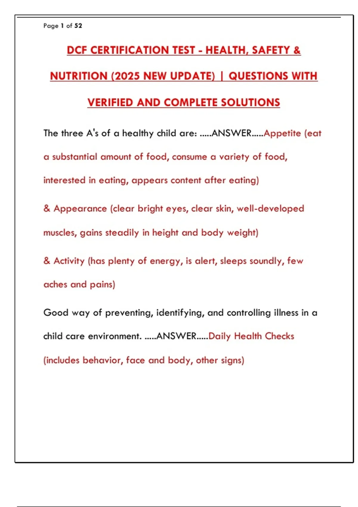 DCF CERTIFICATION TEST - HEALTH, SAFETY &