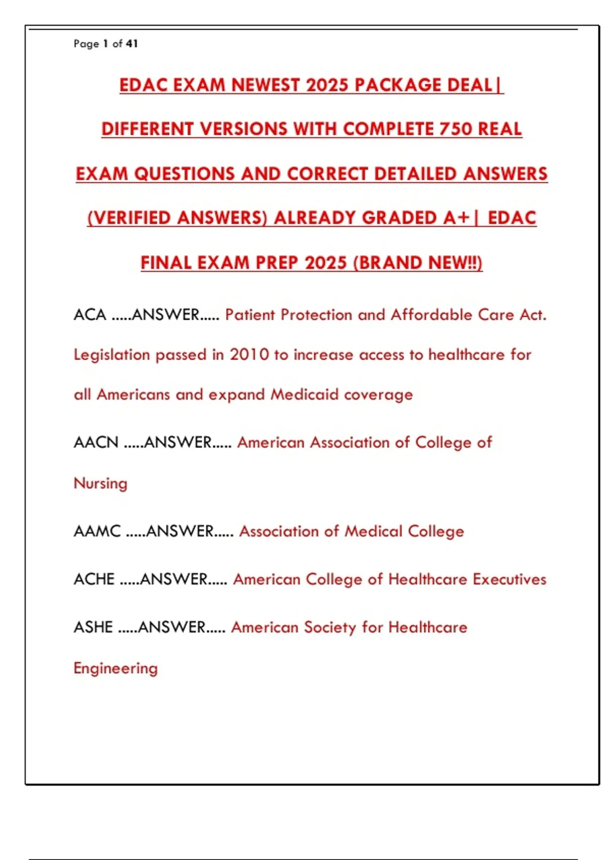 (VERIFIED ANSWERS) ALREADY GRADED A+| EDAC
