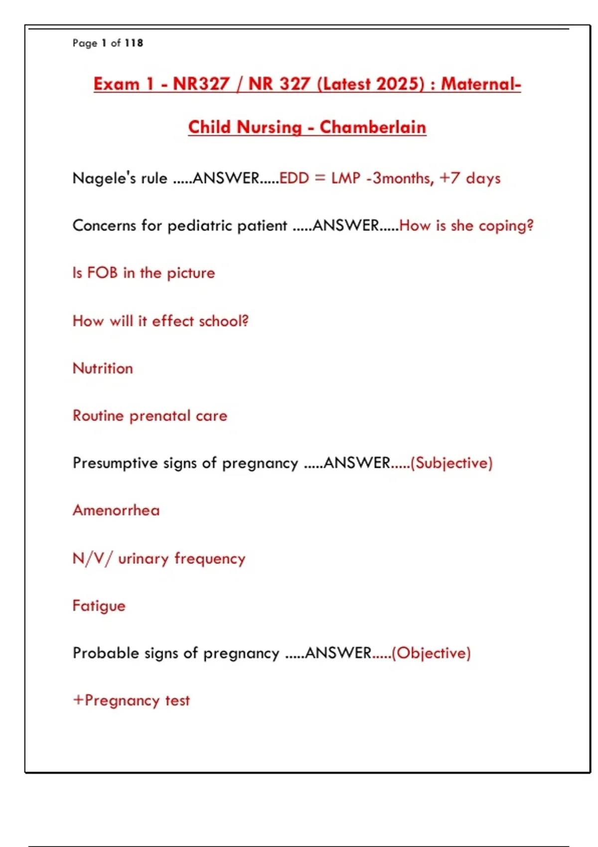 Exam 1 - NR327 / NR 327 (Latest 2025) : Maternal-