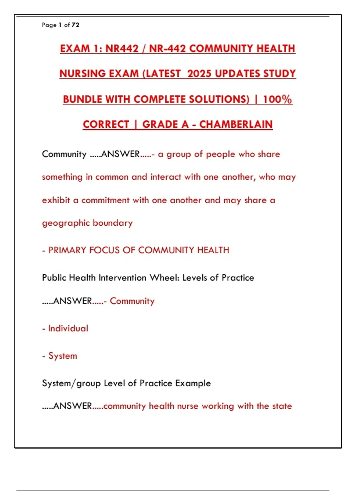 EXAM 1: NR442 / NR-442 COMMUNITY HEALTH