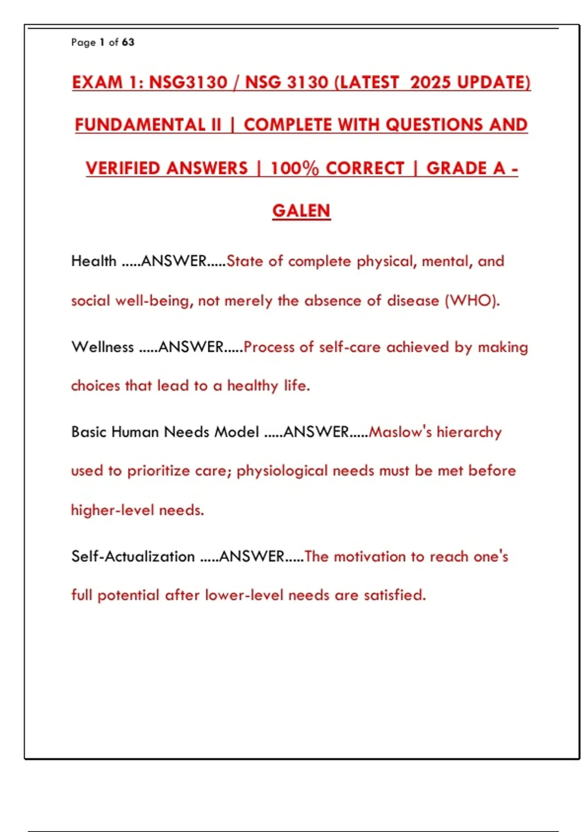 EXAM 1: NSG3130 / NSG 3130 (LATEST 2025 UPDATE)