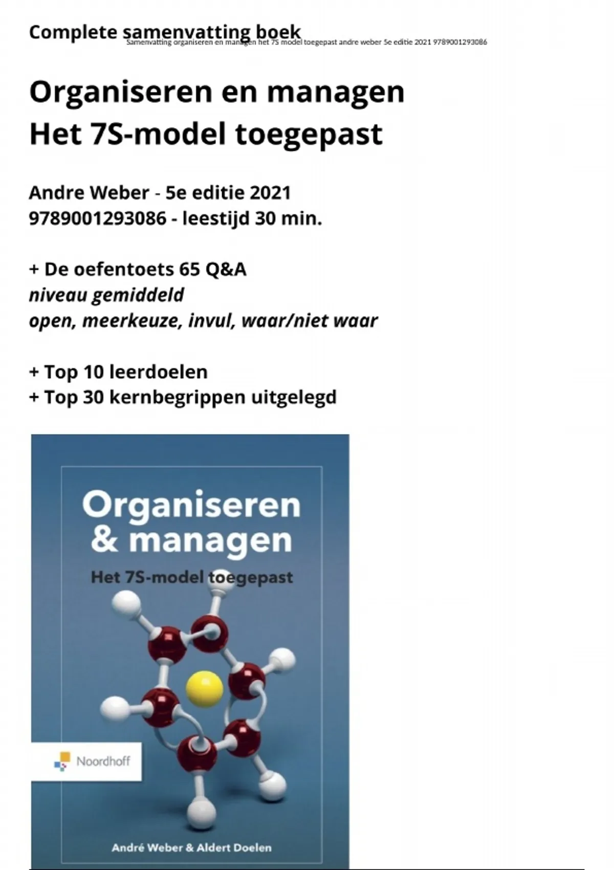 ,Samenvatting organiseren en managen het 7S model toegepast andre weber 5e editie 2021 9789001293086