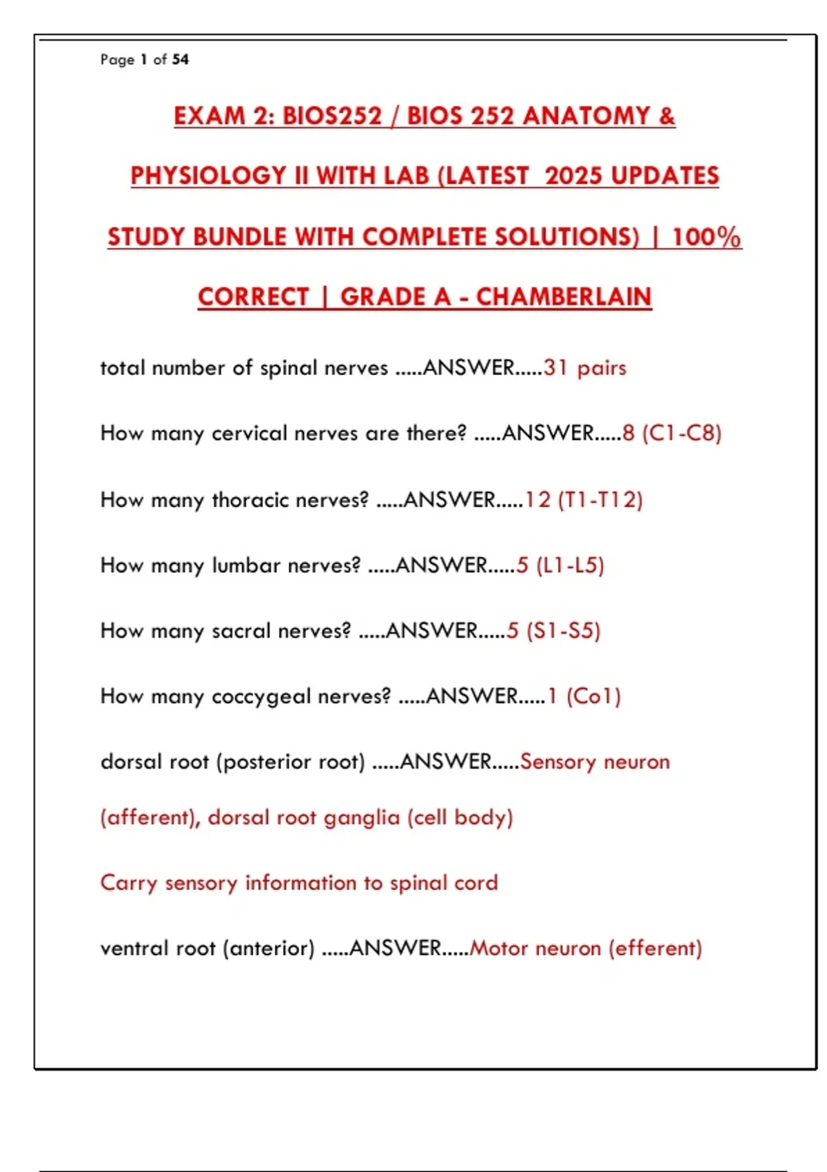 EXAM 2: BIOS252 / BIOS 252 ANATOMY &