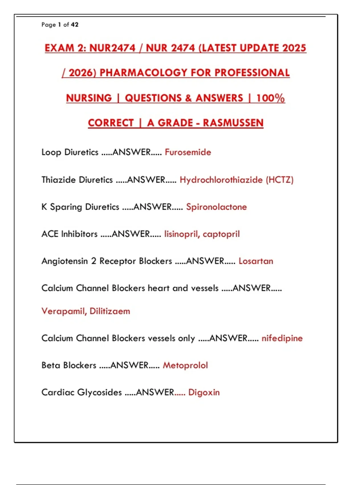 NUR 2474 Exam 2 Study Guide 2025: Pharmacology Practice Questions & Answers