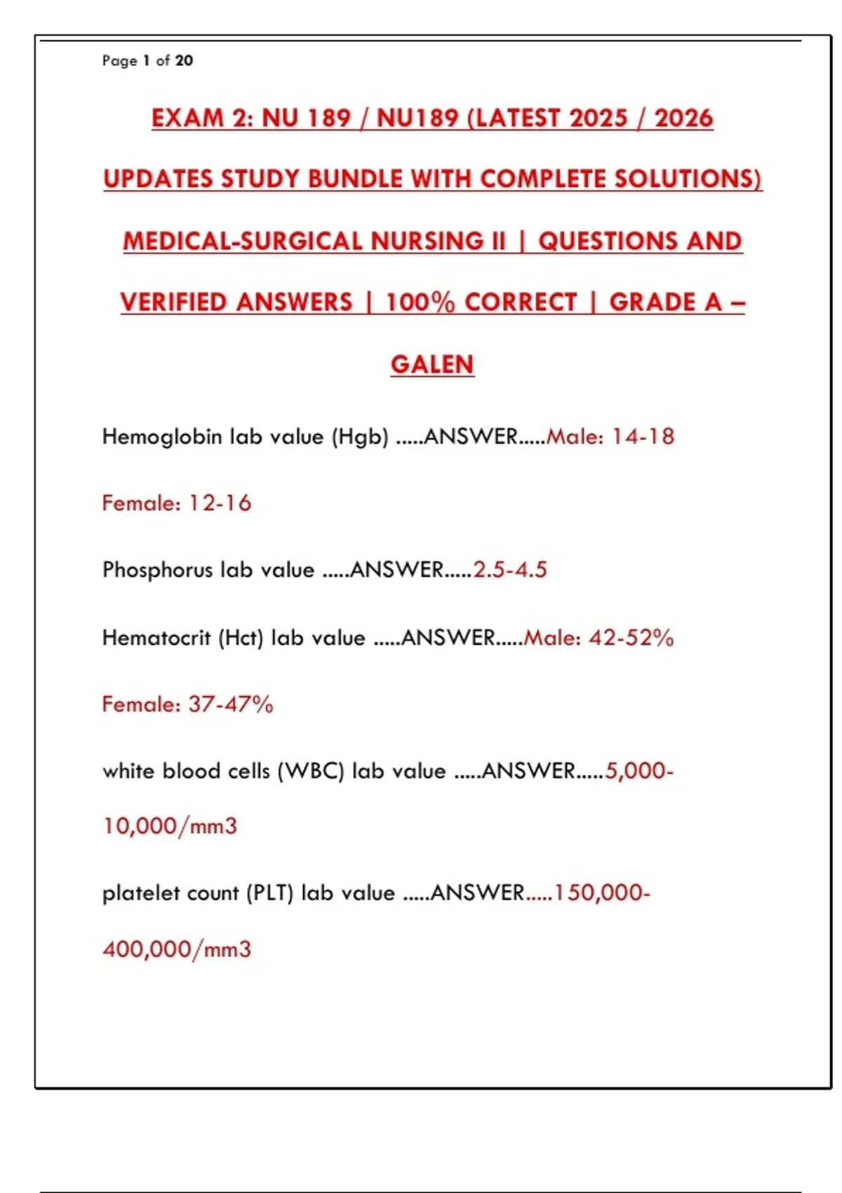 Hemoglobin lab value (Hgb) .....ANSWER.....Male: 14-18