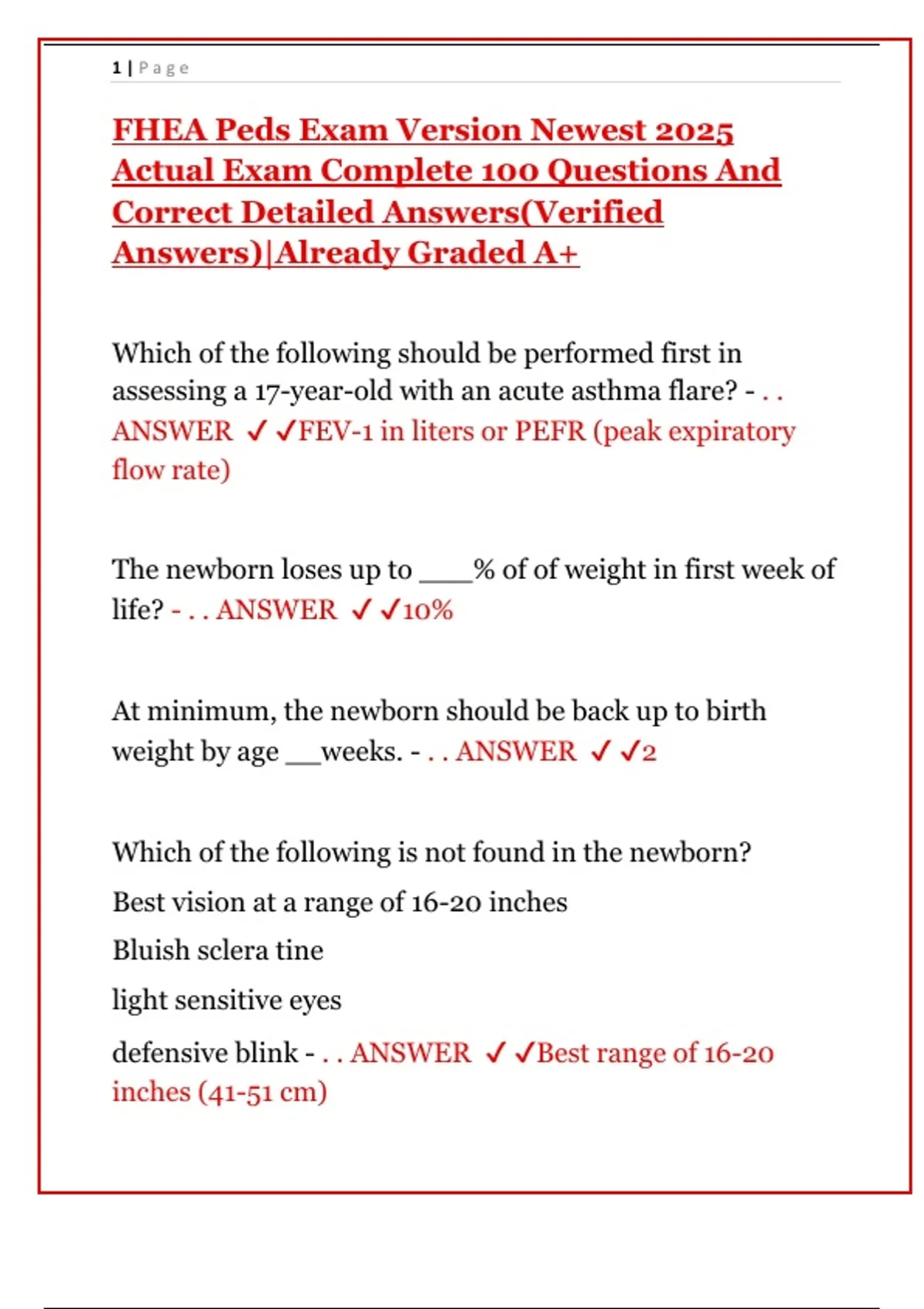 FHEA Pediatrics Exam 2025: 100 Actual Questions & Verified Answers